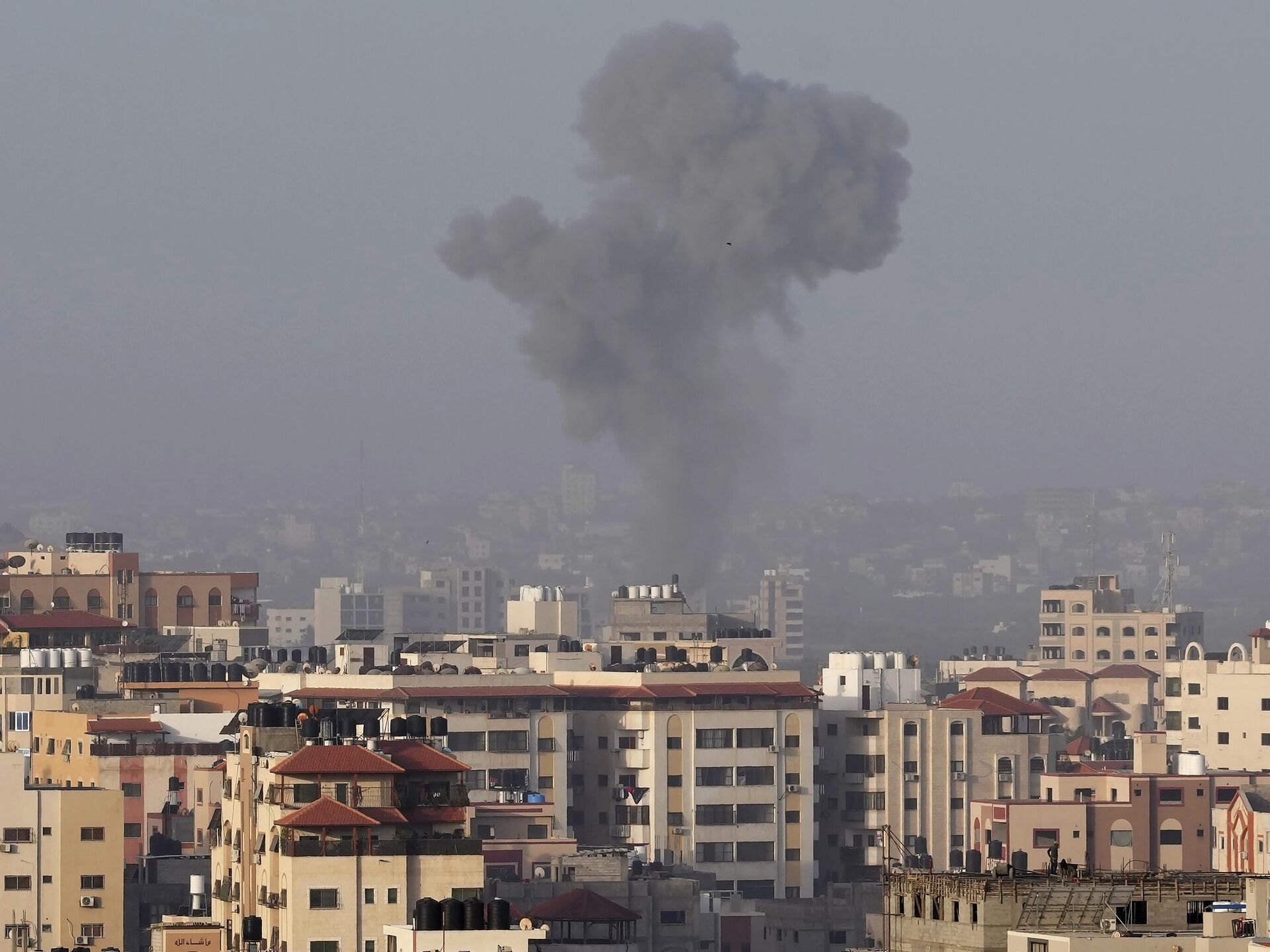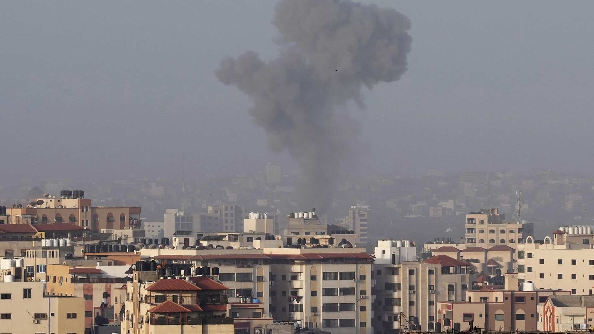 © AP Photo / /Adel HanaДым поднимается после израильских авиаударов по военному лагерю ХАМАС в городе Газа. Архивное фото