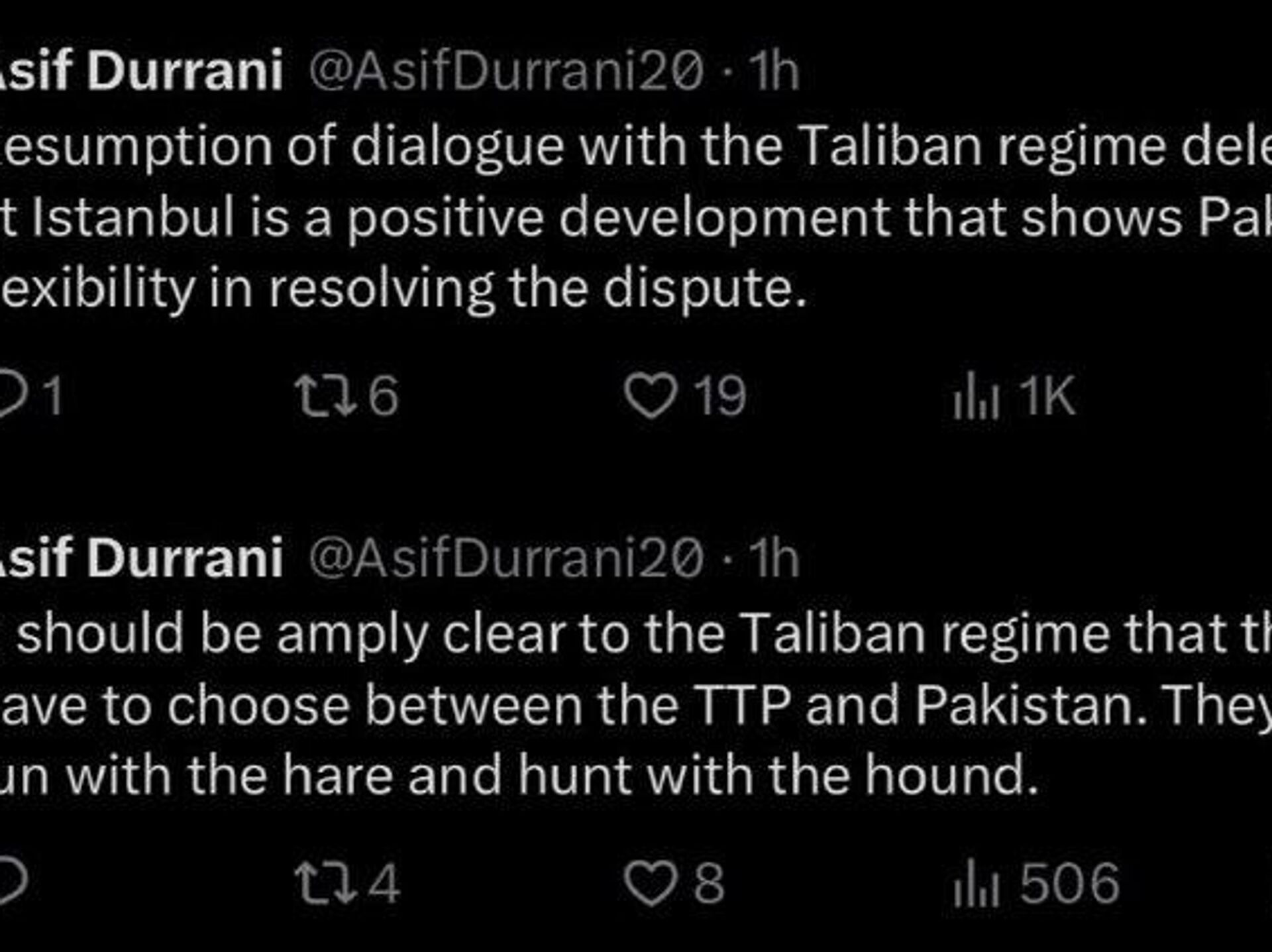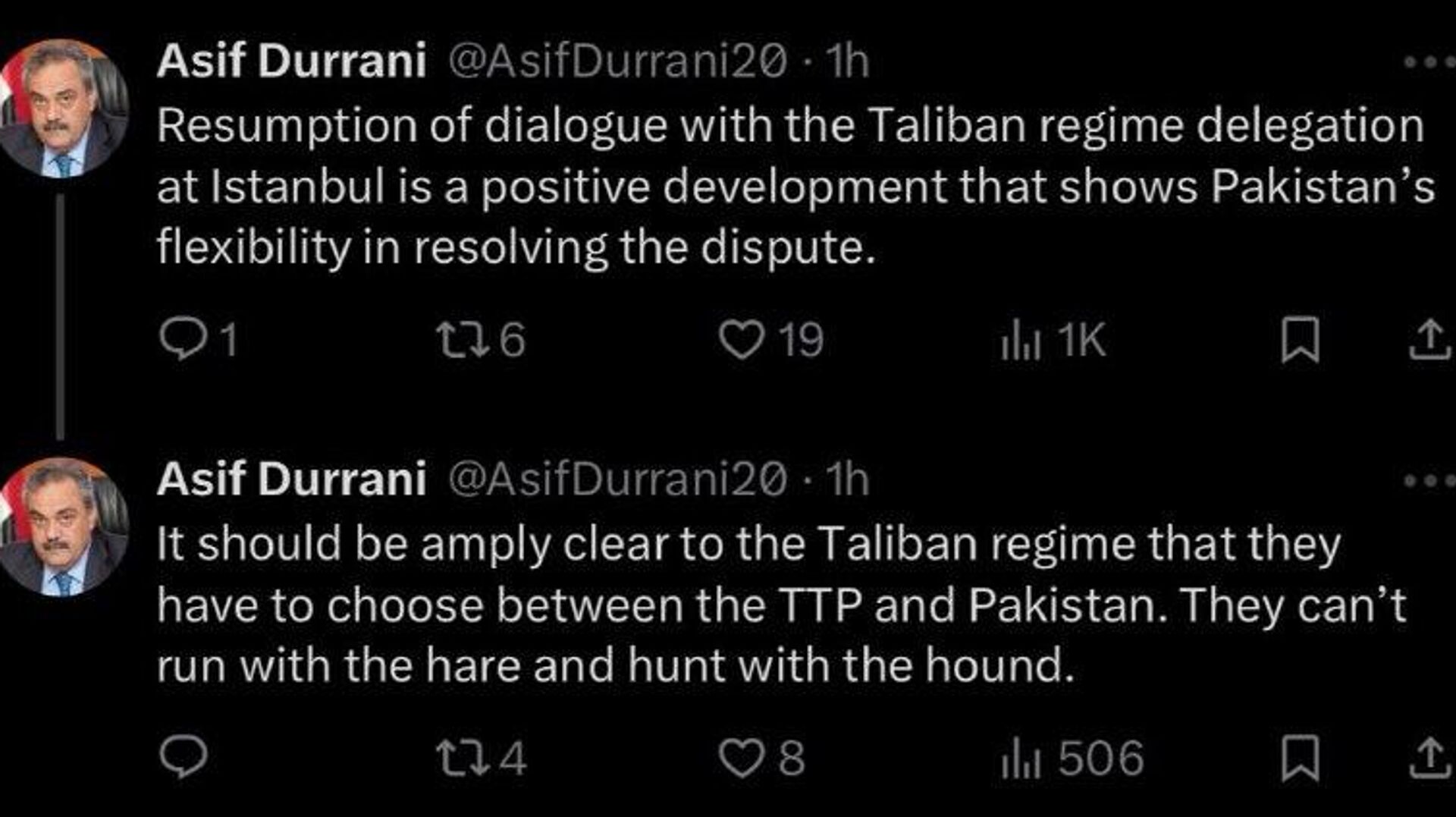 او خبر از شروع مجدد مذاکرات افغانستان و پاکستان در استانبول را پس از شکست دور قبلی استقبال می کند و آن را نشان دهنده انعطاف پذیری اسلام آباد می داند.