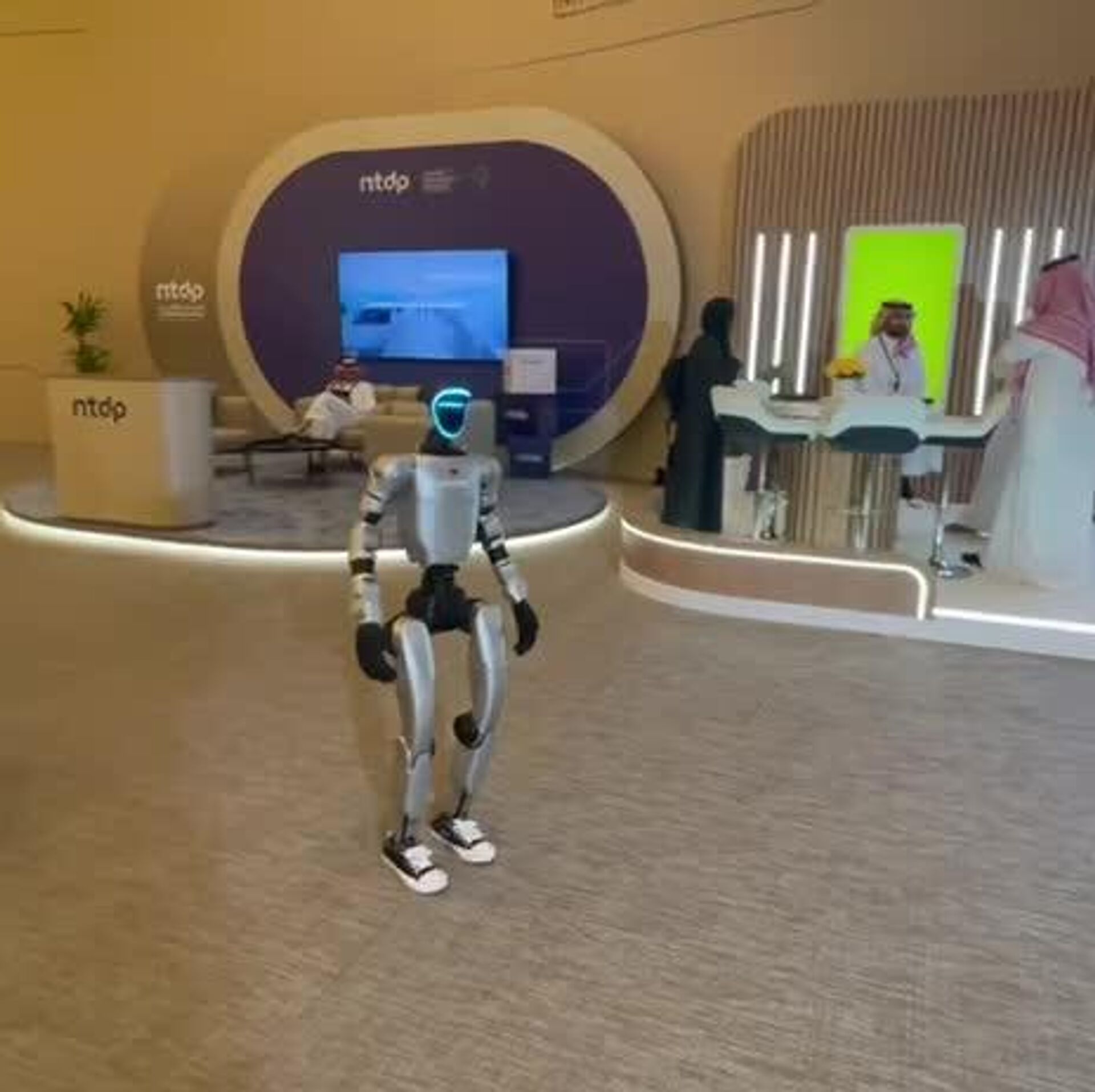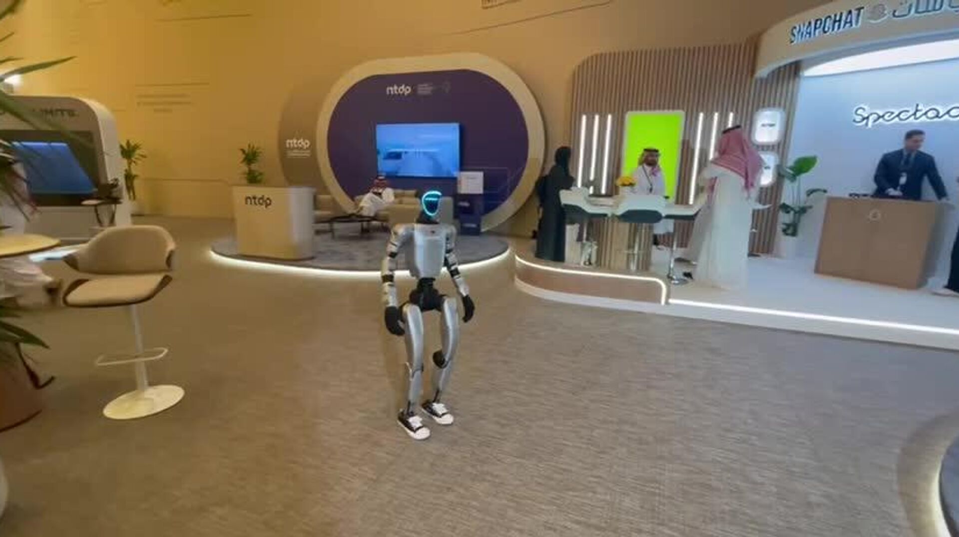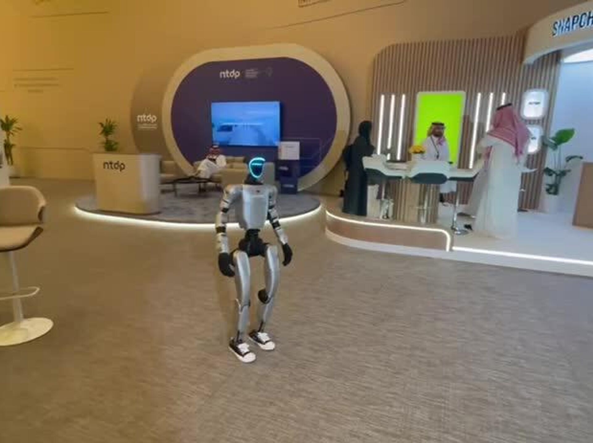 یک ربات چینی در کنفرانس سرمایه گذاری آینده در ریاض رقصی را اجرا می کند