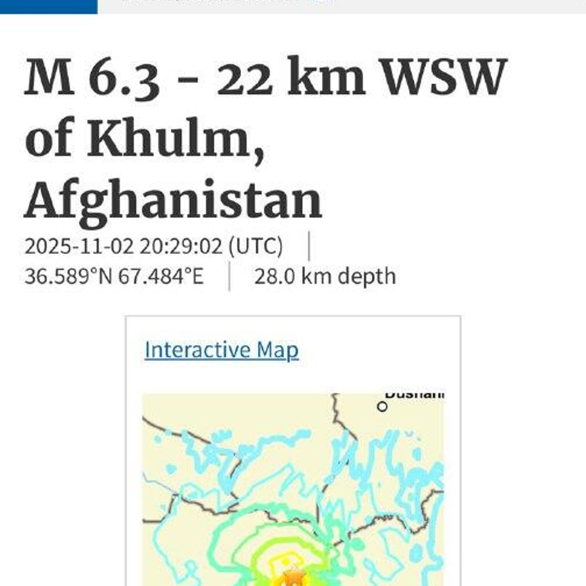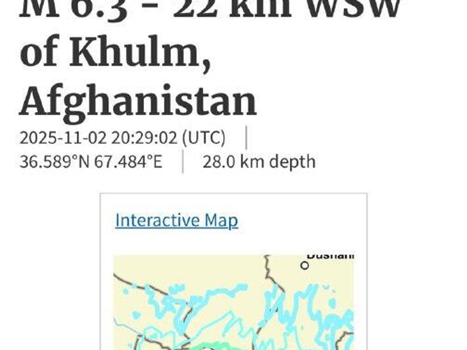 ◻مرکز لرزهنگاری ایالات متحده اعلام کرده است که زمینلرزهای به بزرگی6.3ریشتر دقایقی پیش شمال افغانستان را لرزانده است.