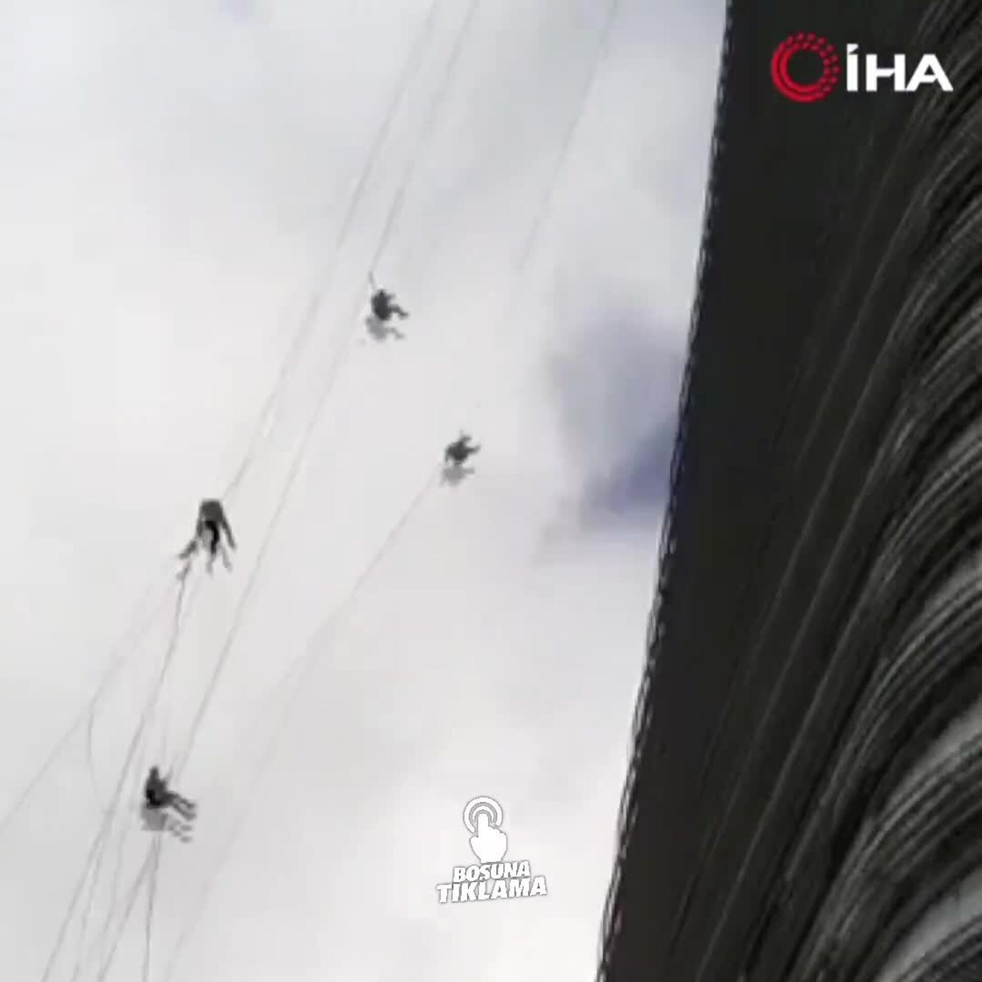 گروهی از شیشهشورها در اثر توفان به مدت دو ساعت در آسمان استانبول گرفتار شدند و سوارکاری هوایی ناخواسته را تجربه کردند. این کارگران که در انتهای طنابهای ایمنی خود آویزان بودند، خوشبختانه در نهایت سالم به زمین بازگشتند.