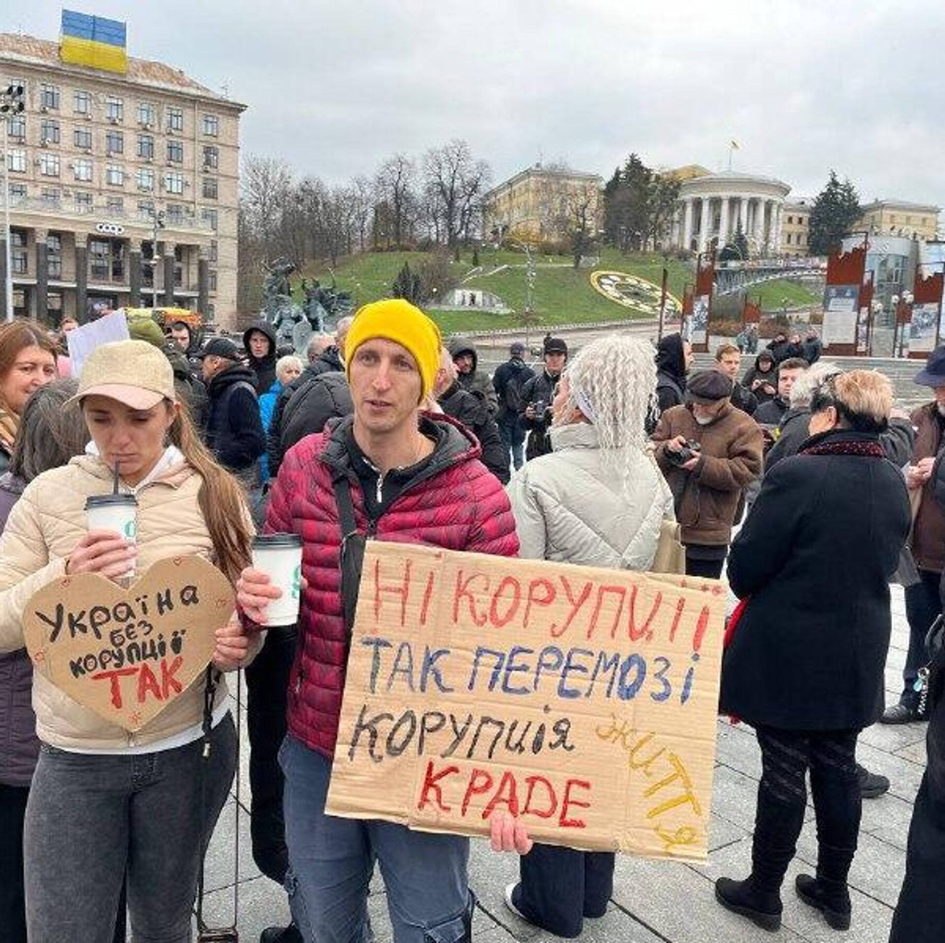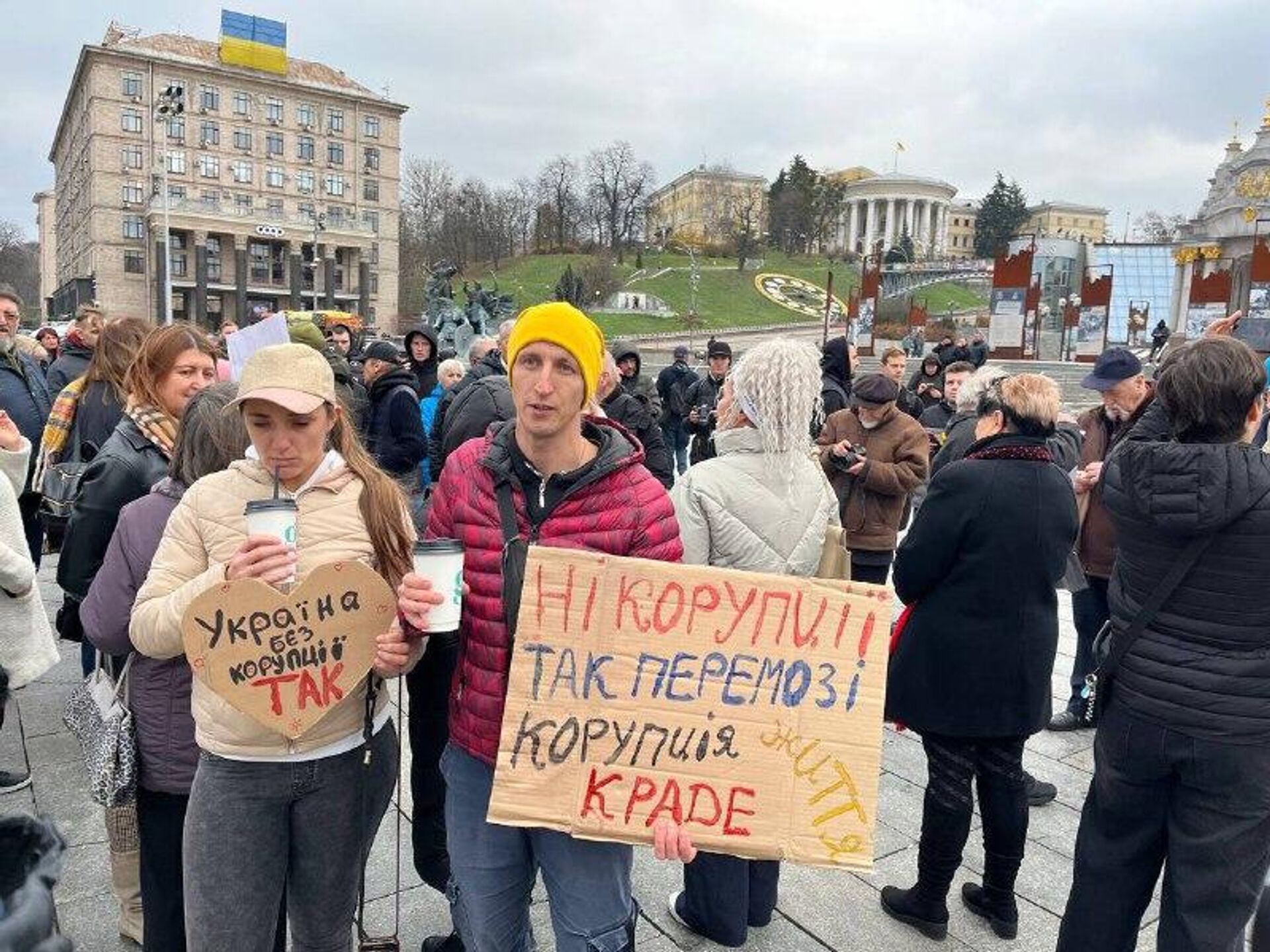 معترضان پلاکاردهایی با شعارهای «زلنسکی جنایتکار است» و «نه به فساد» در دست داشتند.
