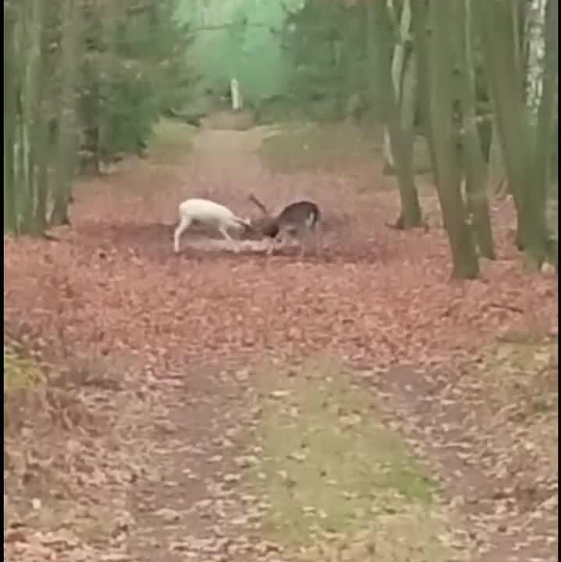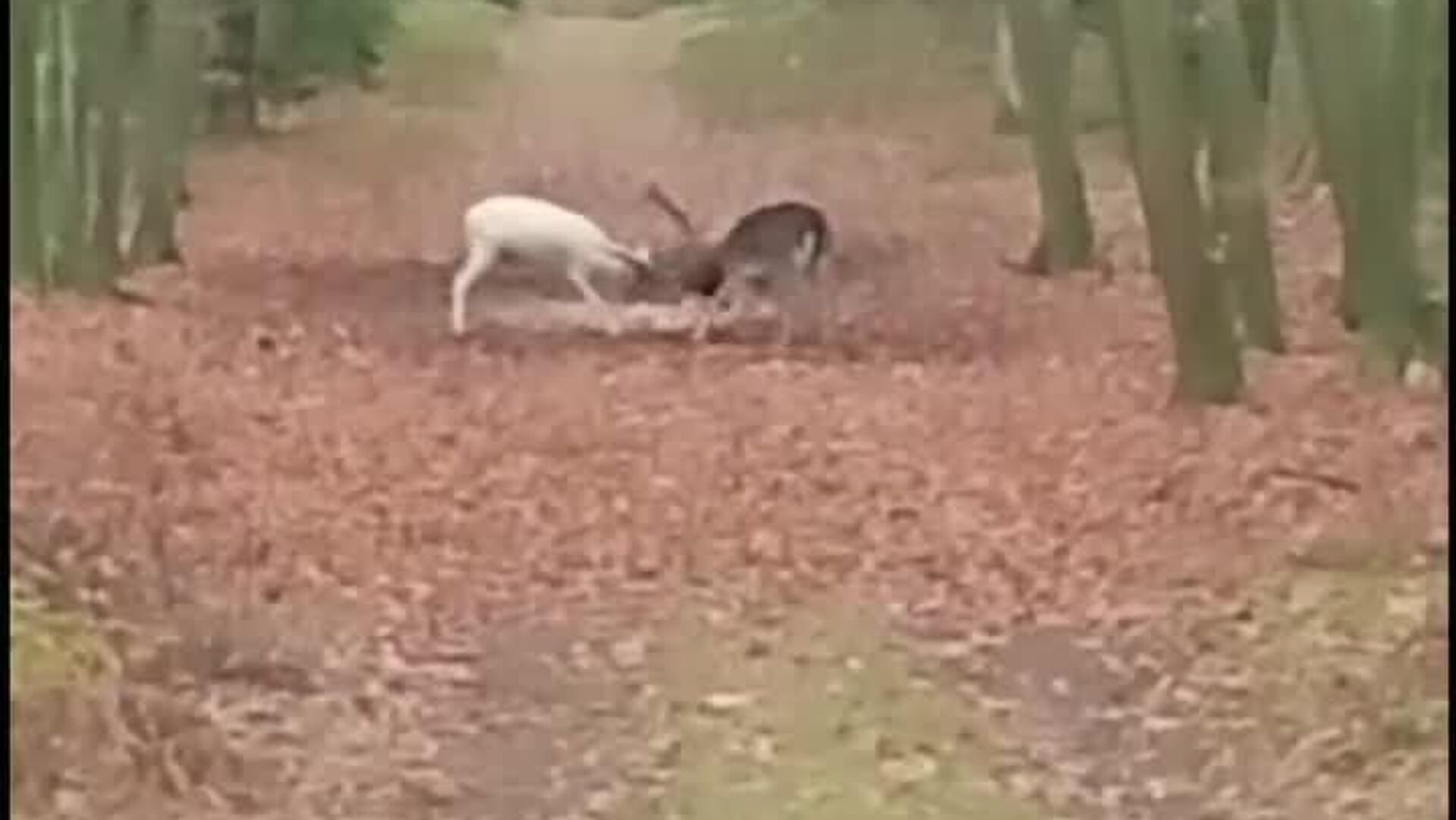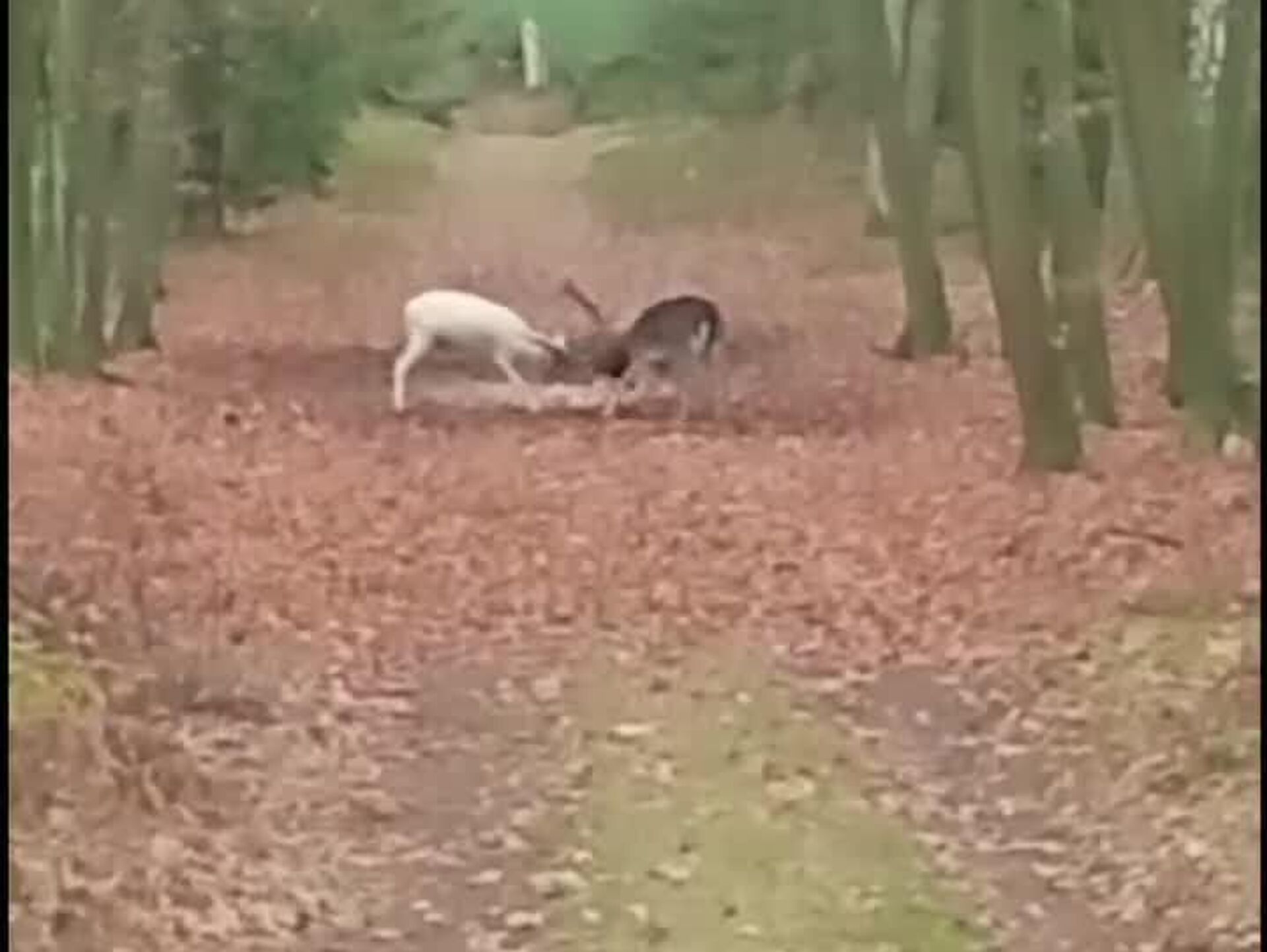 مبارزه دیدنی دو گوزن نر در منطقهی در لهستان