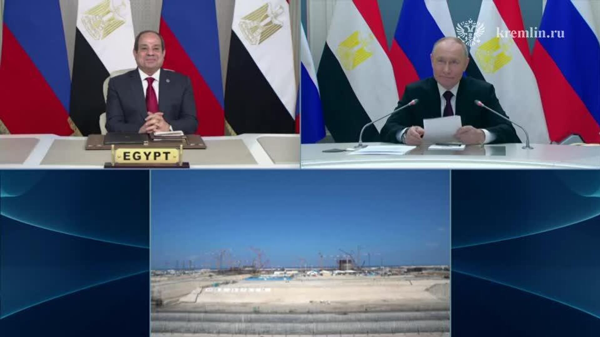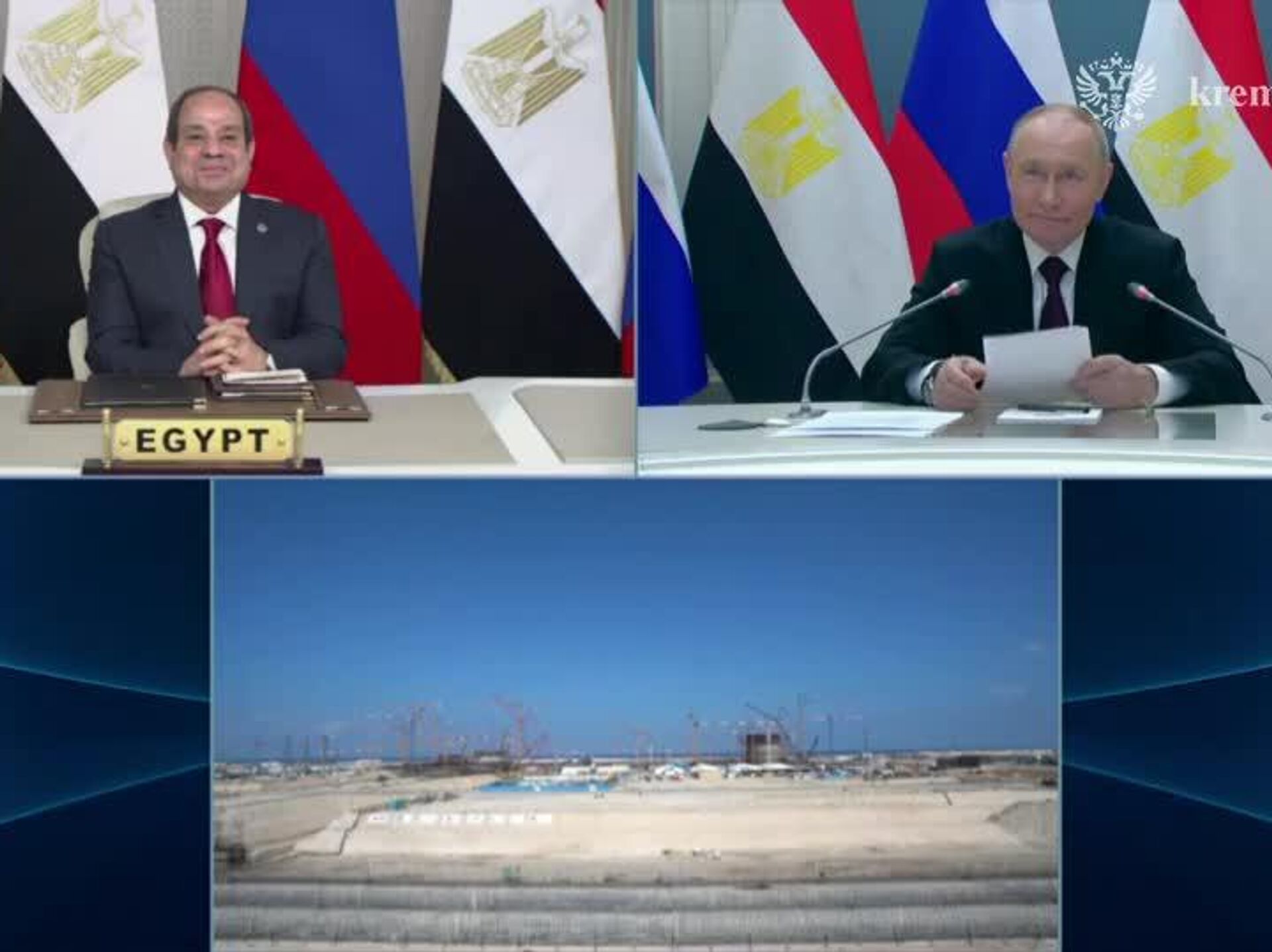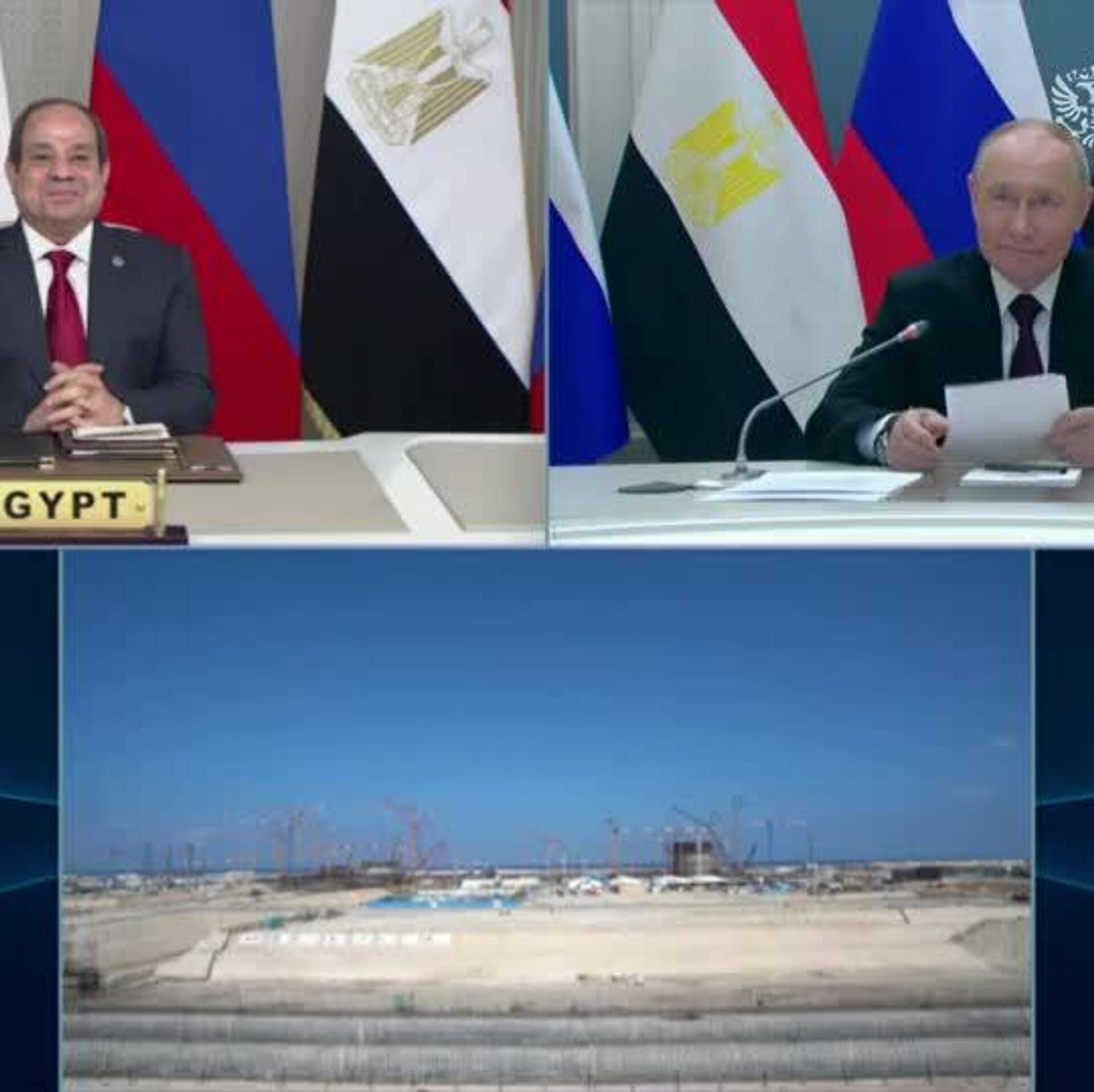 ولادیمیر پوتین و عبدالفتاح السیسی، رئیسان جمهور روسیه و مصر، به صورت ویدئوکنفرانس در مراسم نصب بدنه رآکتور نخستین واحد نیروگاه هسته ای «الضبعه» شرکت کردند.