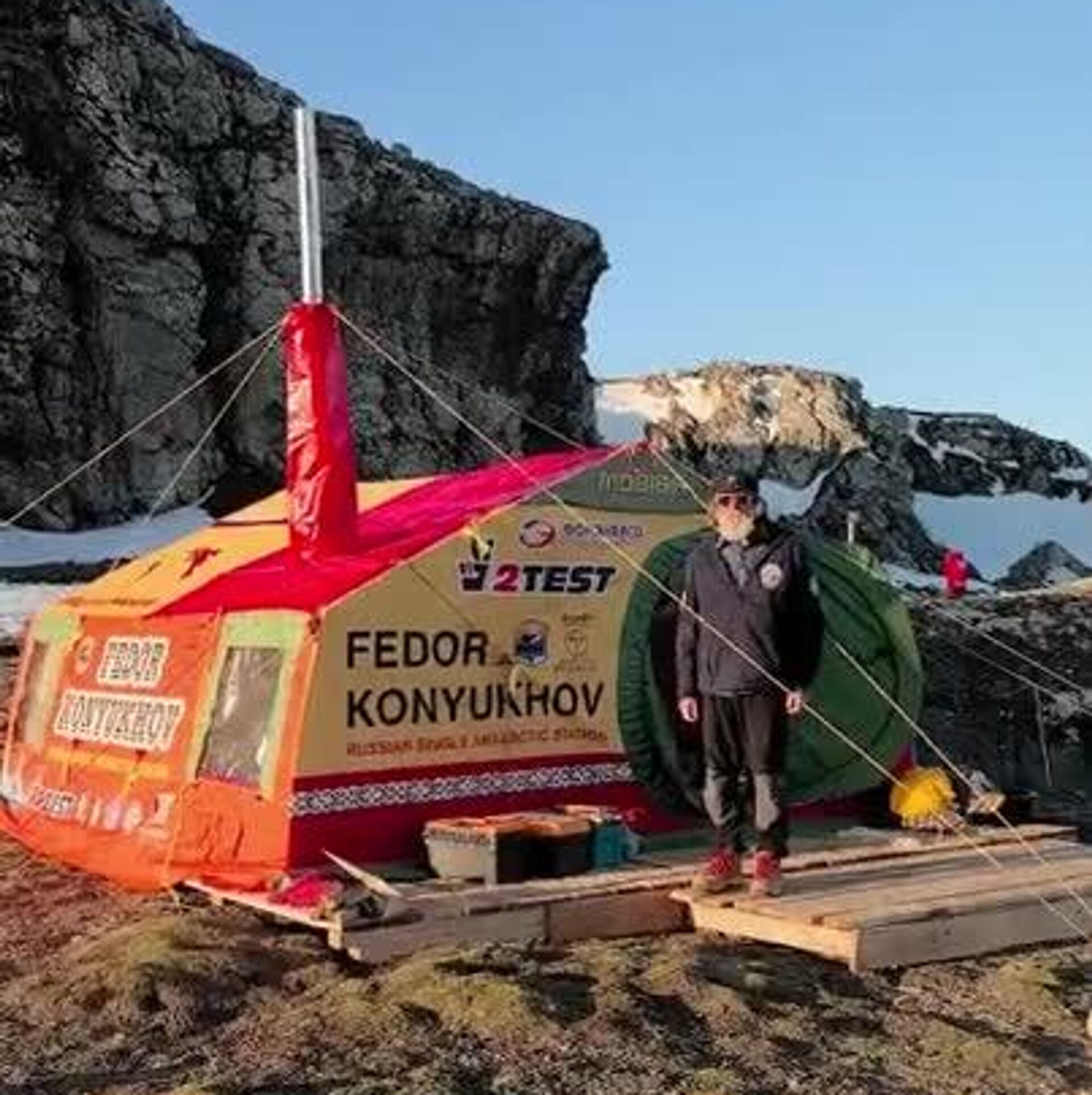 تیم کونیخوف یک ایستگاه قطبی انفرادی در قطب جنوب برای این ماجراجو ساختند که او به مدت چهار ماه در آن اقامت خواهد داشت.
