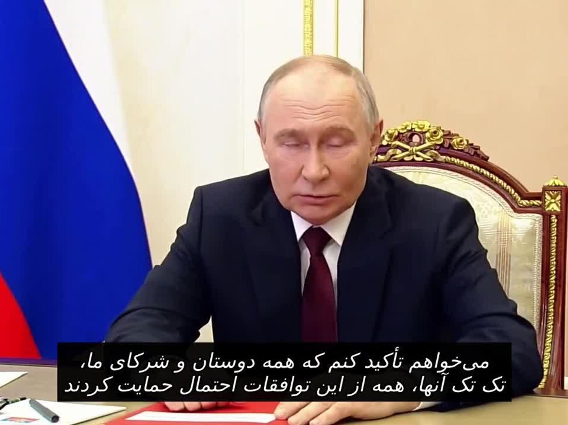 ◻ ولادیمیر پوتین، رئیس جمهور روسیه افزود، میخواهم تأکید کنم که همه دوستان و شرکای ما، تک تک آنها، از این توافقات احتمالی حمایت کردند.