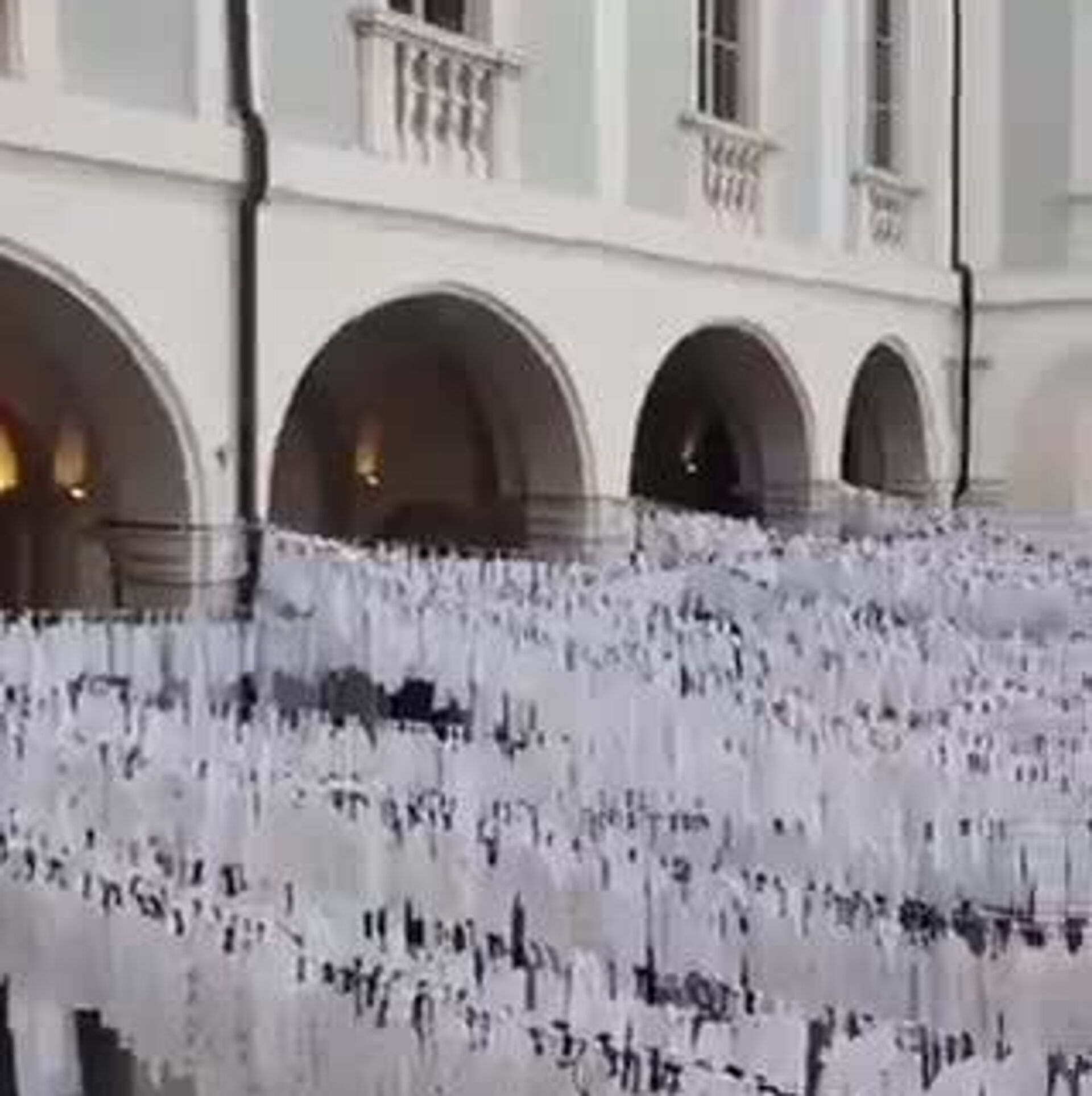معلمان، والدین و کودکان در شهر برشا ایتالیا در یک مراسم یادبود تأثیرگذار شرکت کردند و نام و سن 20 هزار کودک غزهای را بر روی نوارهای پارچهای سفید نوشتند تا یاد و خاطره آنها را گرامی بدارند و حق زندگی آنها را به رسمیت بشناسند.