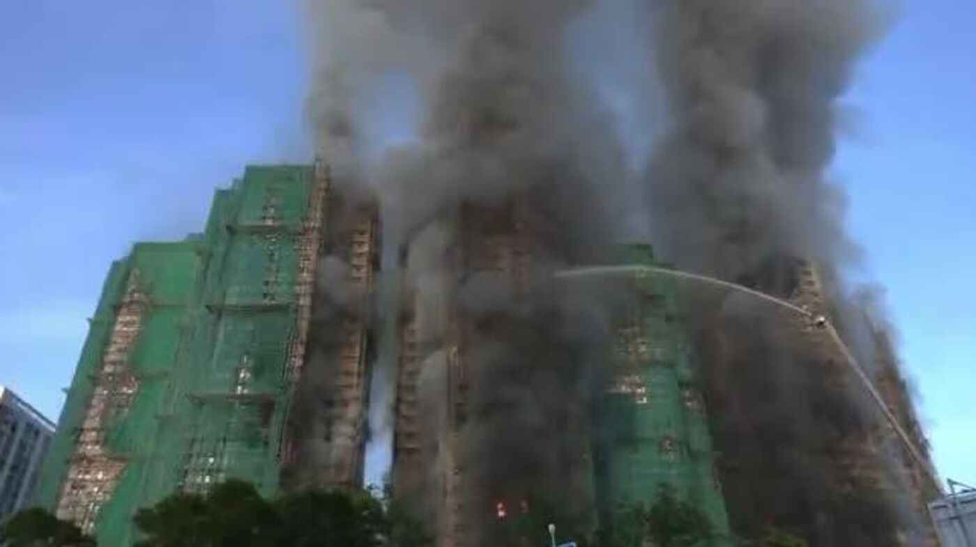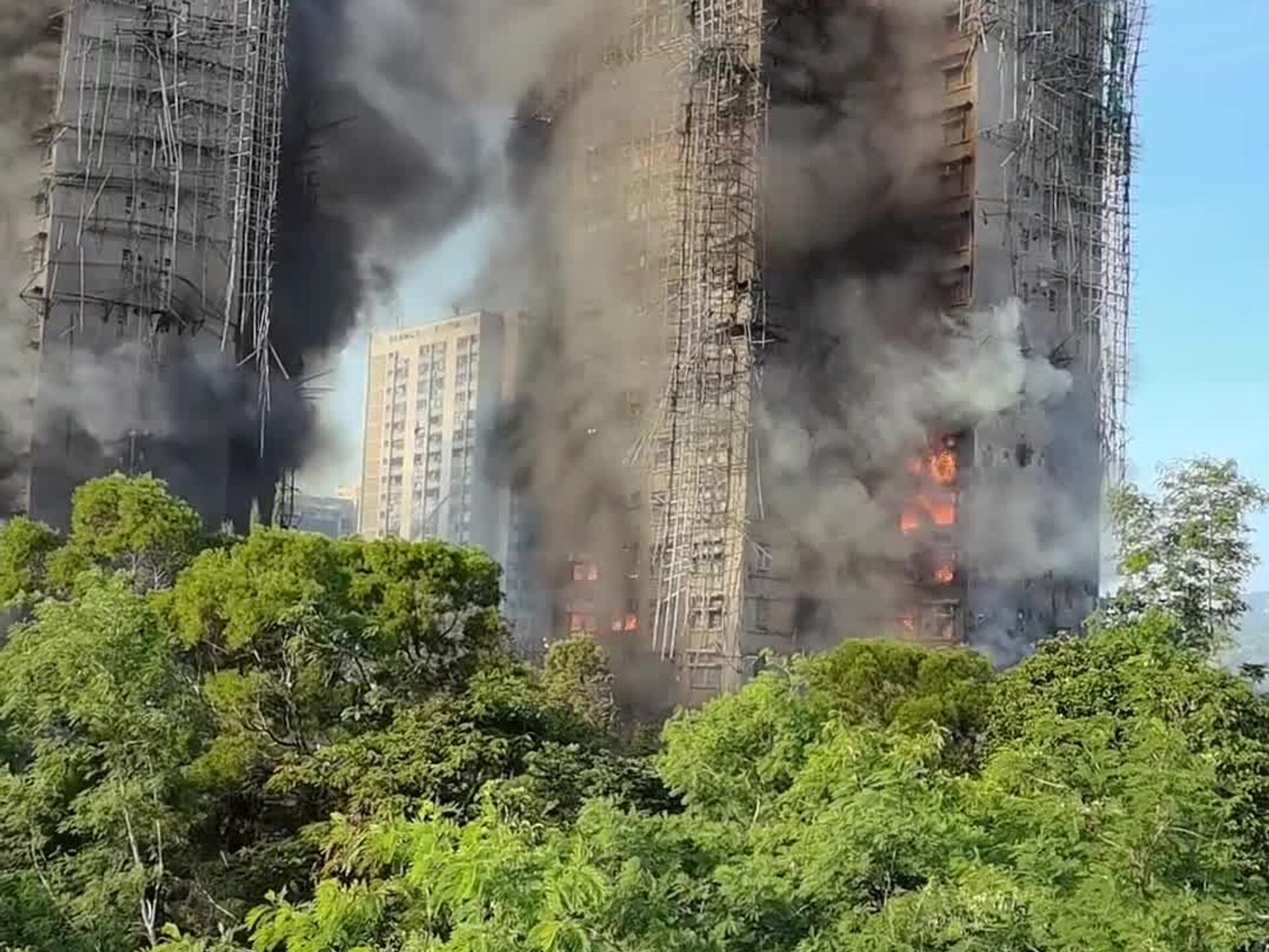 در حالی که آتشنشانان در حال مهار آتش و رسیدگی به گزارشهای متعدد مبنی بر محبوس شدن ساکنان در داخل ساختمان بودند، شعلههای آتش به سرعت در سراسر داربستهای بامبو و تورهای ساختمانی گسترش یافت.