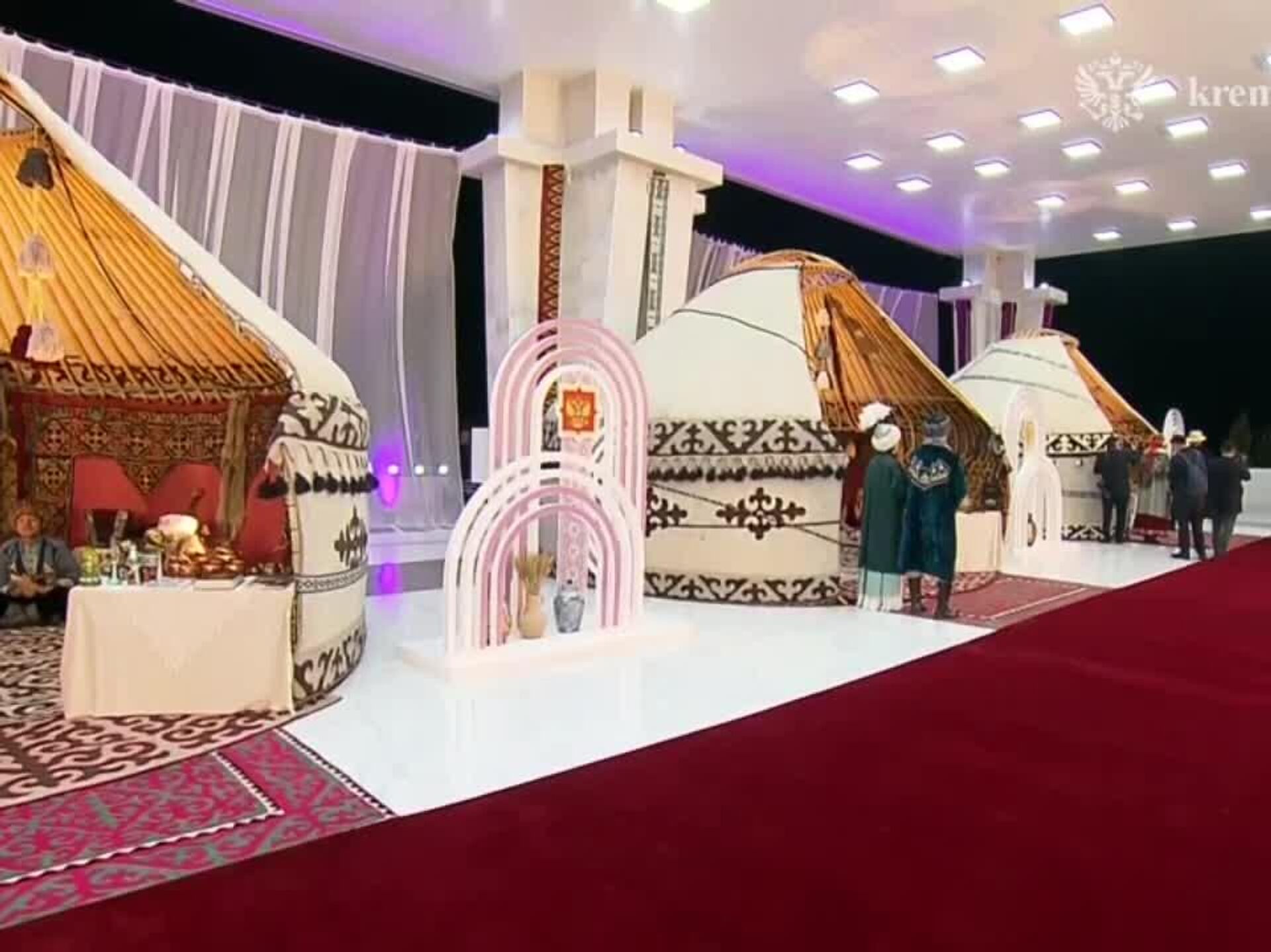 ولادیمیر پوتین، رئیس جمهور روسیه در جریان یک برنامه فرهنگی برای رهبران سازمان پیمان امنیت جمعی در که در داخل یک یک یورت - چادر عشایری قابل حمل - در محل اقامت رئیس جمهور سدیر جپاروف در آلا-آرچا برگزار شده بود ساز کوموز، ساز زهی سنتی قرقیزی را نواخت.