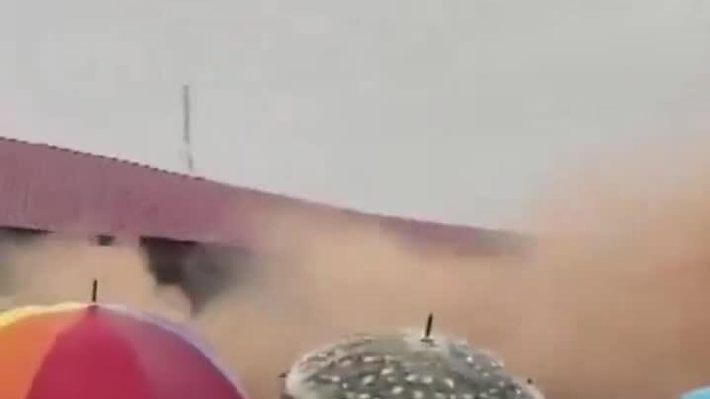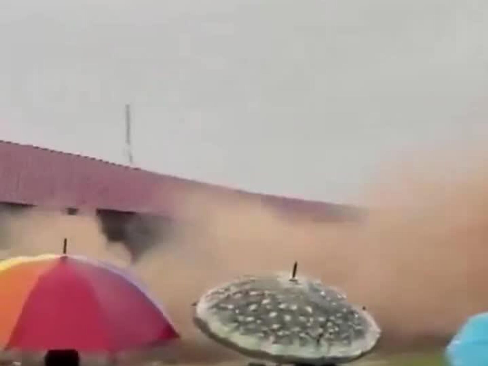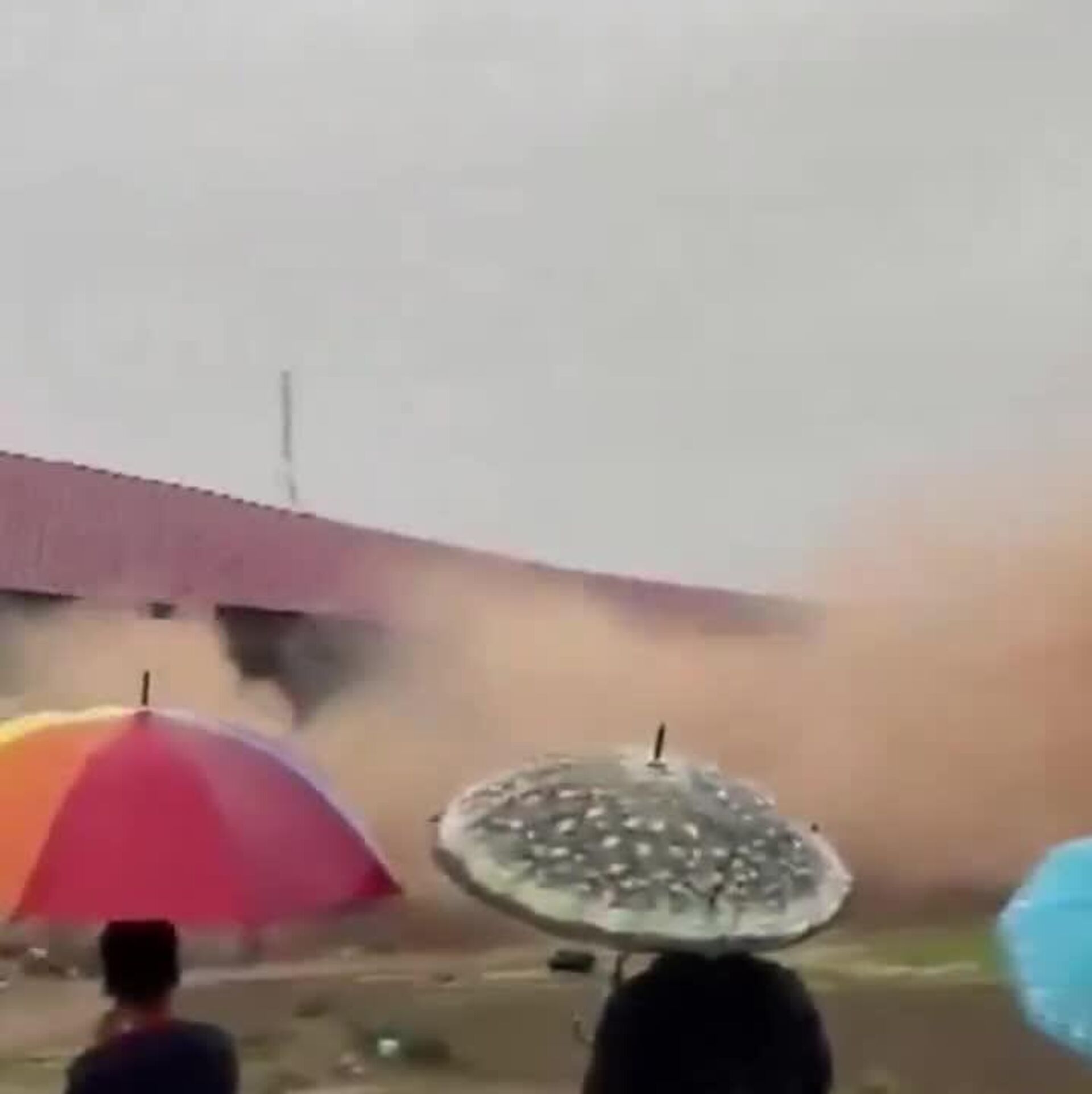 🟡 در نخستین نوارهای دیداری، ساختمان یک مکتب شبانهروزی اسلامی در ولایت آچه اندونزیا دیده میشود که پس از چند روز باران شدید فرو می ریزد.