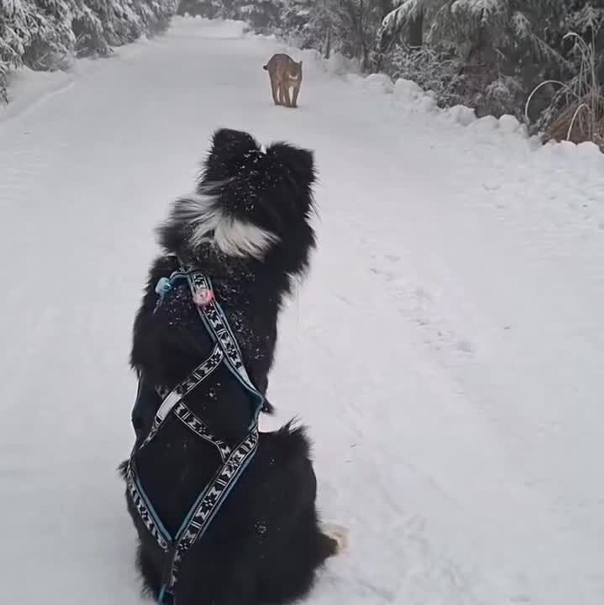 یک لهستانی، هنگام پیاده روی در کوههای پربرف تاترا، با یک سیاه گوش که در امتداد مسیر جنگلی قدم میزد، مواجه شد.