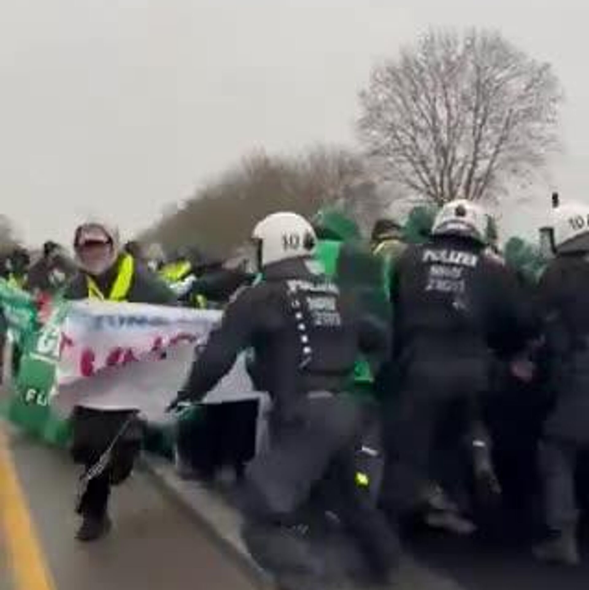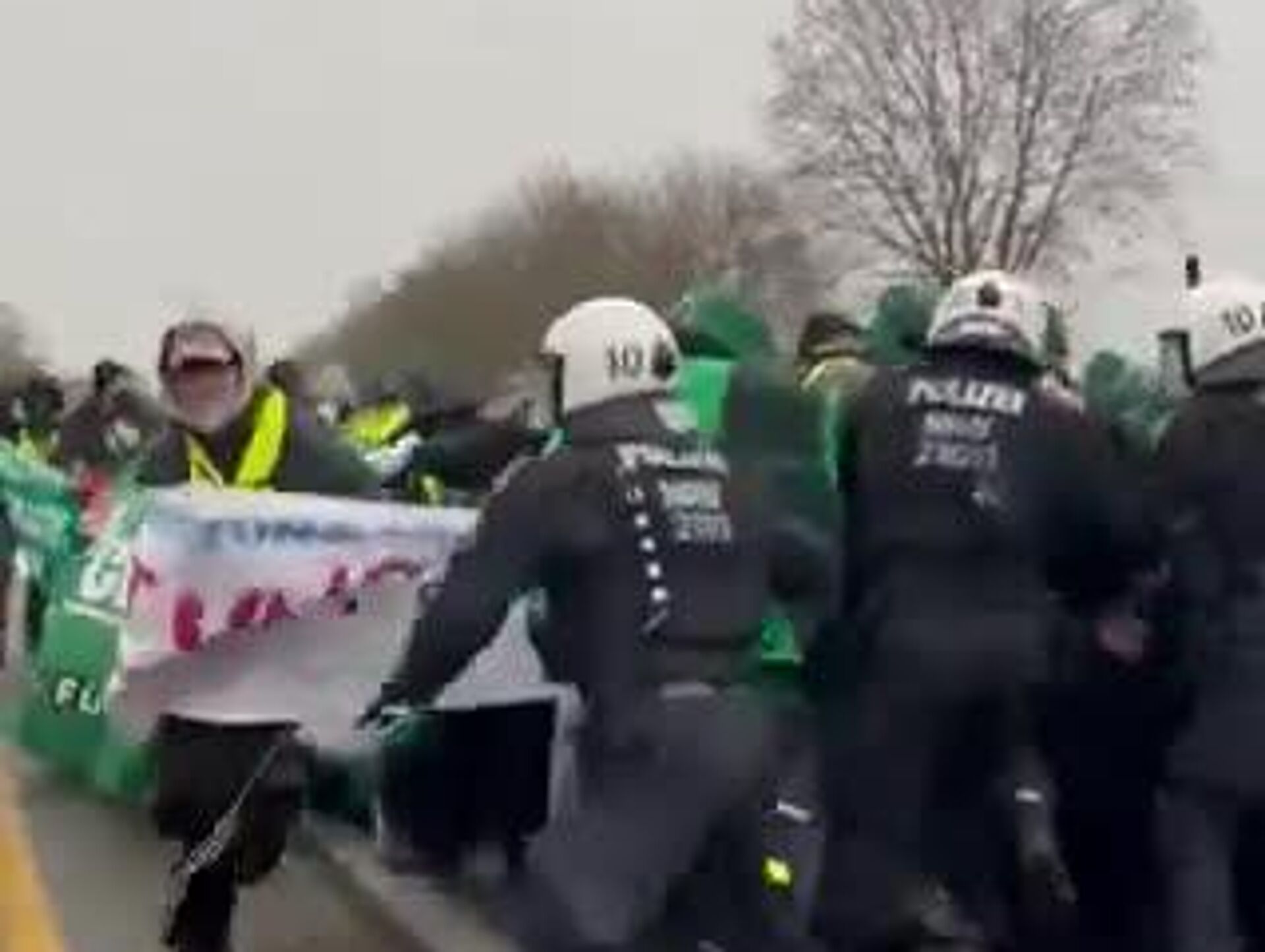پلیس در نزدیکی هسن با استفاده از آبپاش ها، محاصره 2000 نفری را از بین برد، زیرا معترضان به درخواست شفاهی برای پاکسازی خیابان پاسخ ندادند. شرکت کنندگان در تظاهرات بر روی پل کنراد آدناور در هسن به پلیس بطری پرتاب کردند.