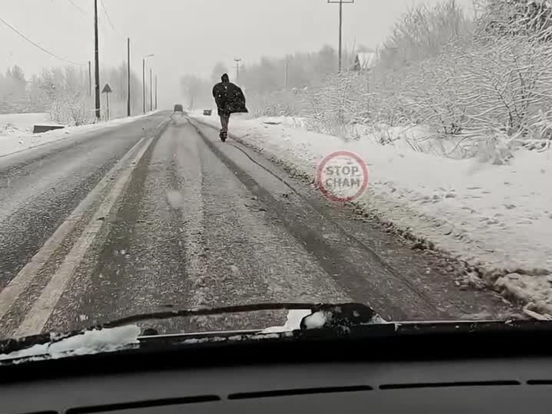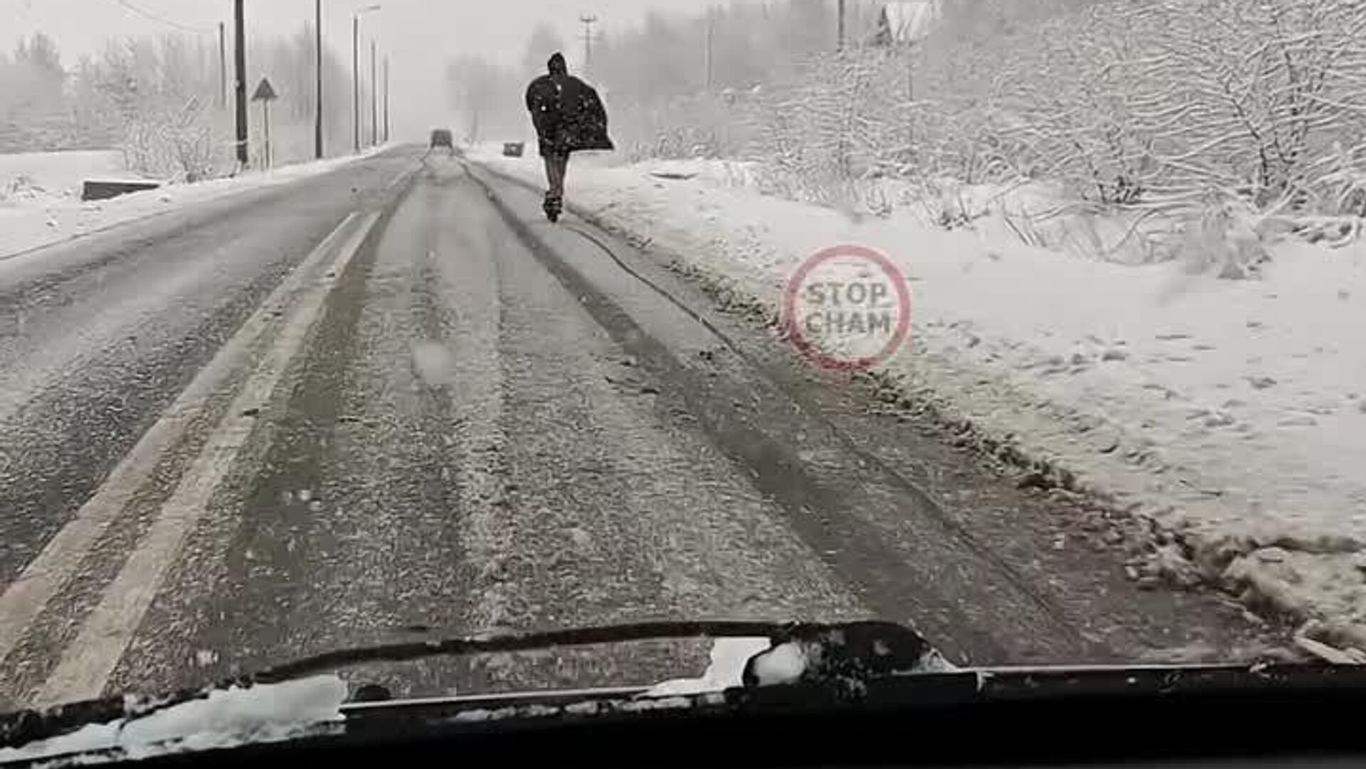 20:35 30.11.2025 (بازآوری شدن: 20:50 30.11.2025) «بتمن» سوار بر اسکوتر در خیابان برفی در شهر گرودزیسک لهستان دیده شد