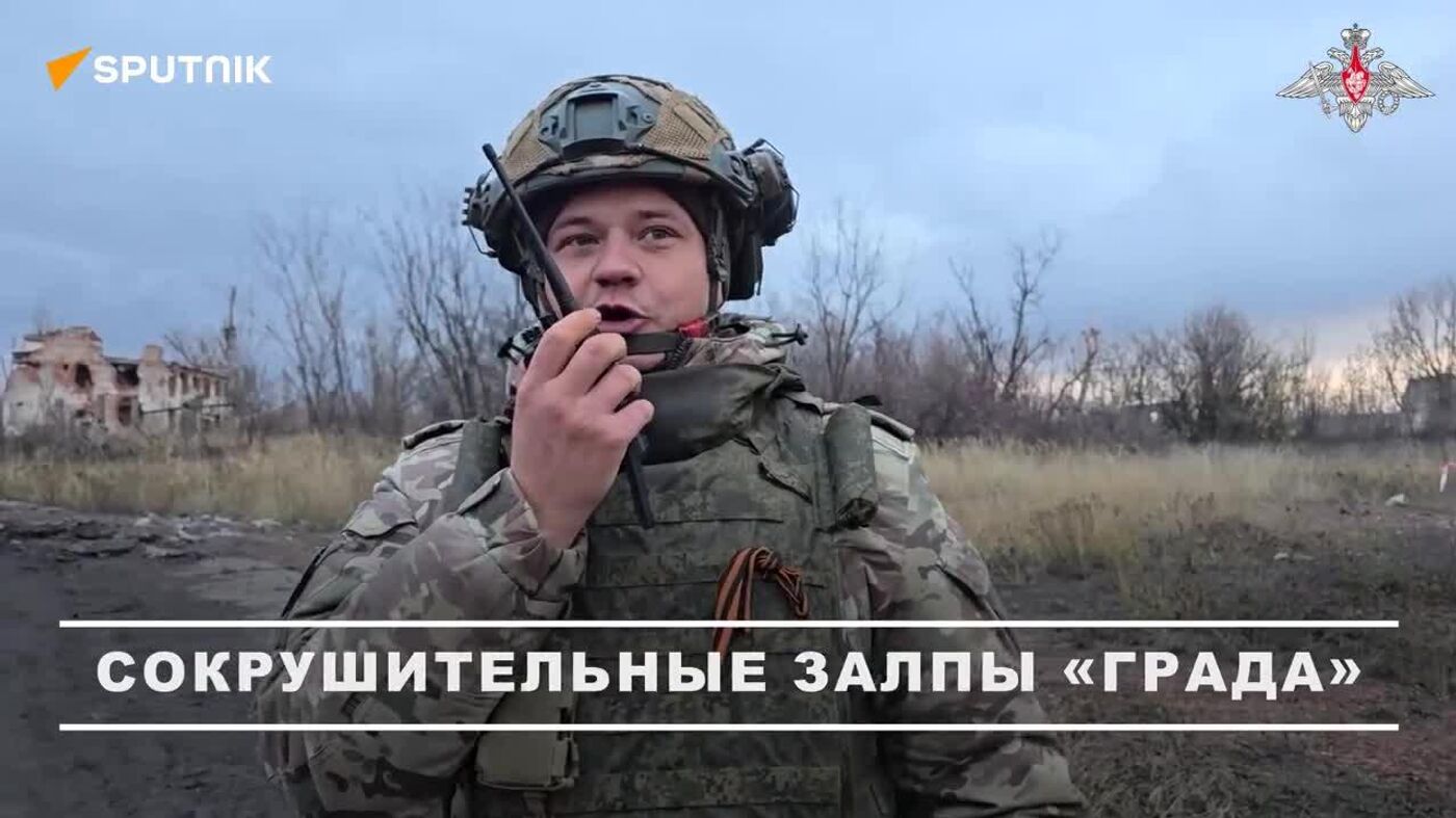 خدمه سامانه راکتانداز چندگانه BM-21 گراد از واحد توپخانهای گروه نیروهای ارتش هشتم ترکیبی مرکز، یک دژ مستحکم نیروهای مسلح اوکراین را در جهت کراسنوارمیسک منهدم کردند.