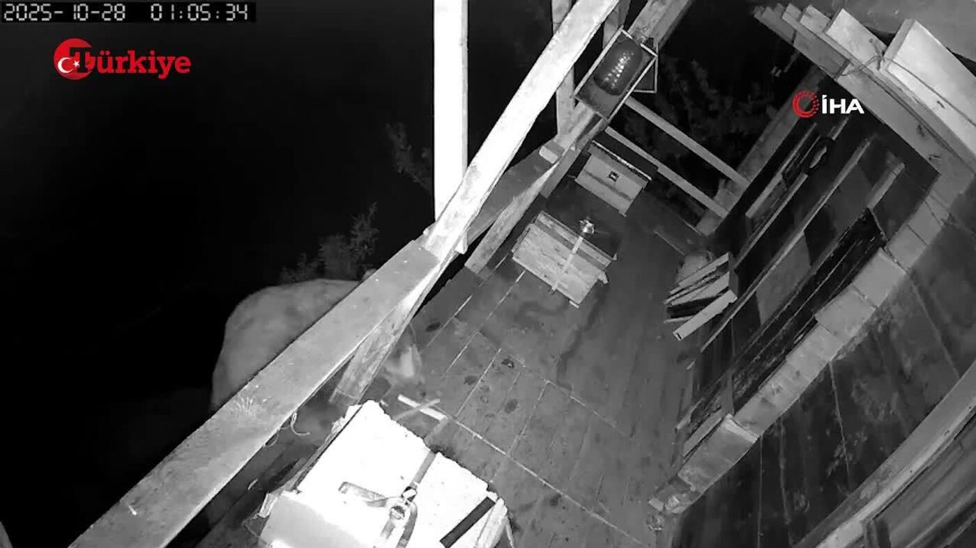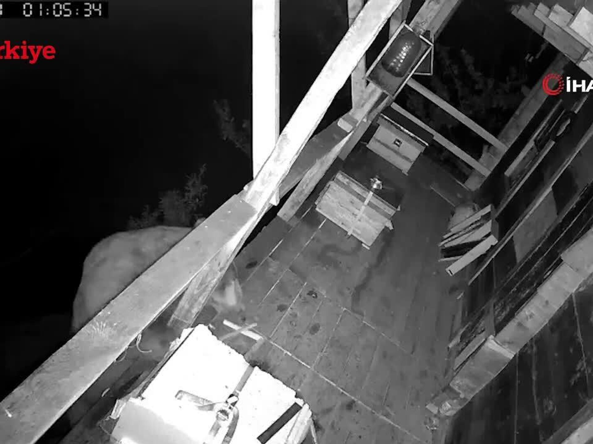 یک خرس گرسنه در ترکیه از بالکن یک خانه بالا رفت، یک کندوی عسل پیدا و آن را غارت کرد.