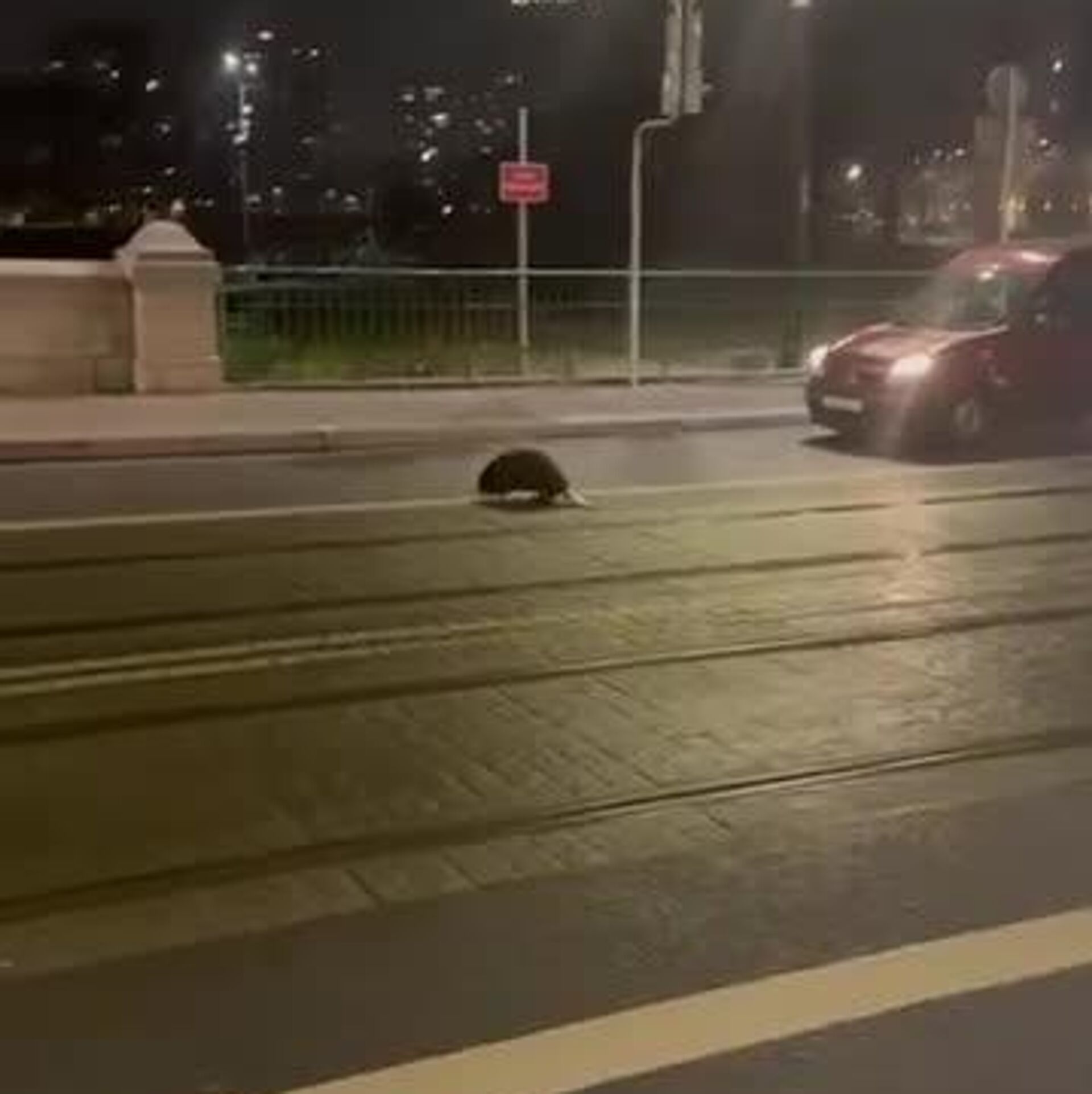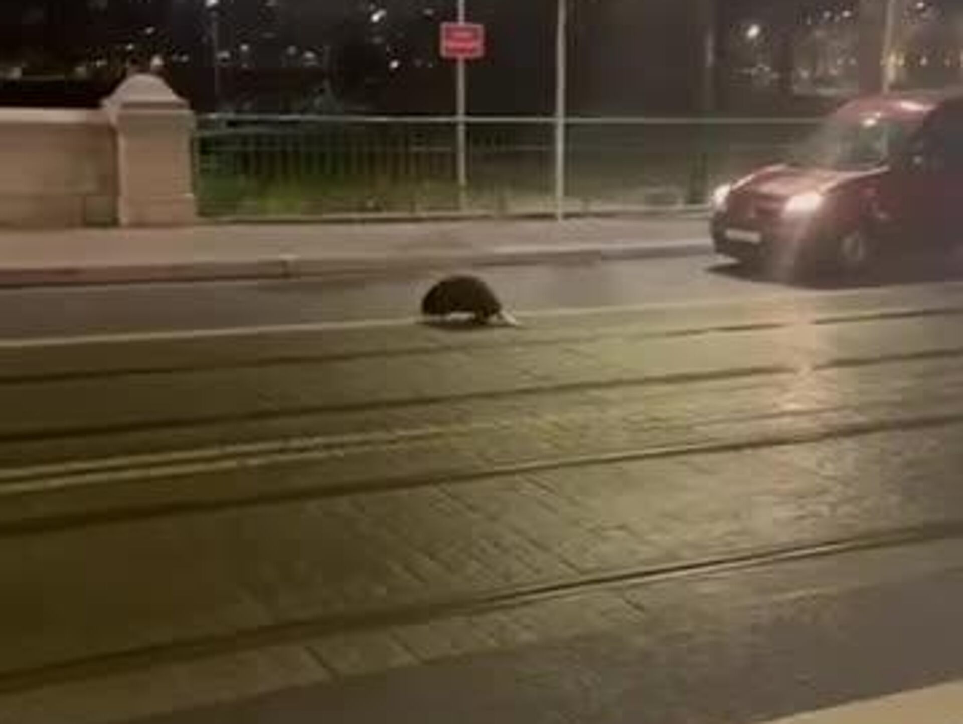 21:46 05.12.2025 (بازآوری شدن: 21:50 05.12.2025) قدم زدن یک سگ آبی در خیابانهای مرکز شهر وروتسواف پولند