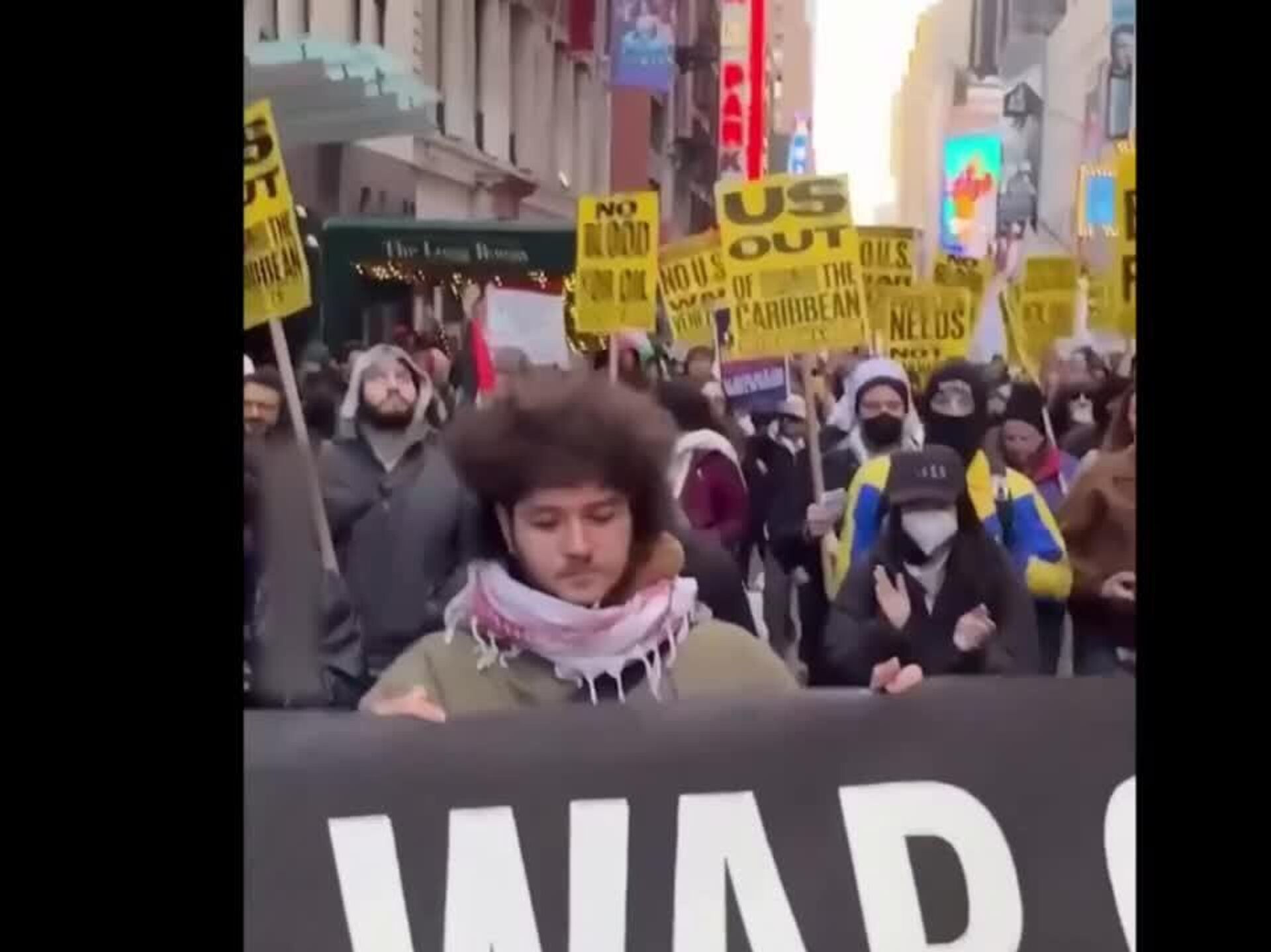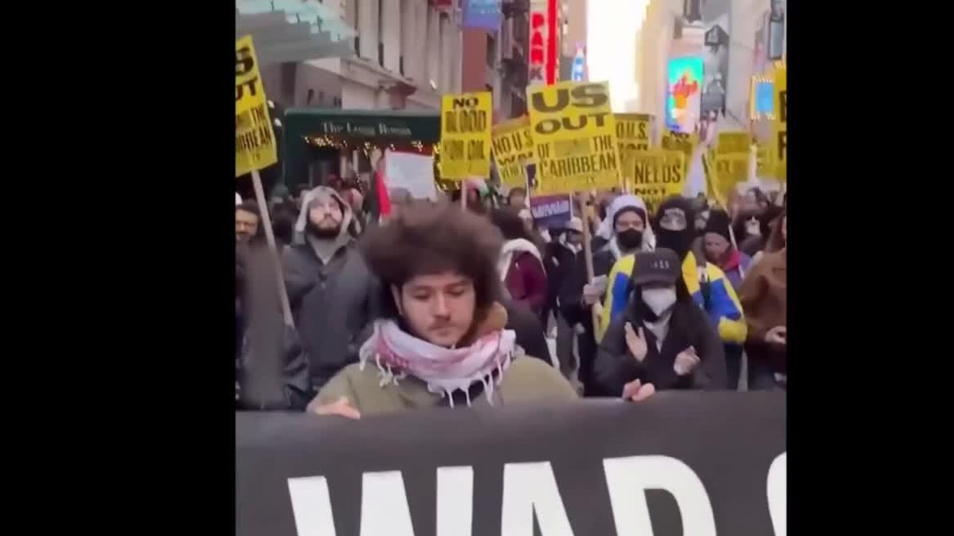 ◻ مردم پرچمها را تکان میدادند، شعار میدادند و پلاکاردهایی با شعارهای ضد جنگ در دست داشتند. اعتراضات مشابهی نیز در بیش از 60 شهر در سراسر ایالات متحده برگزار شد.