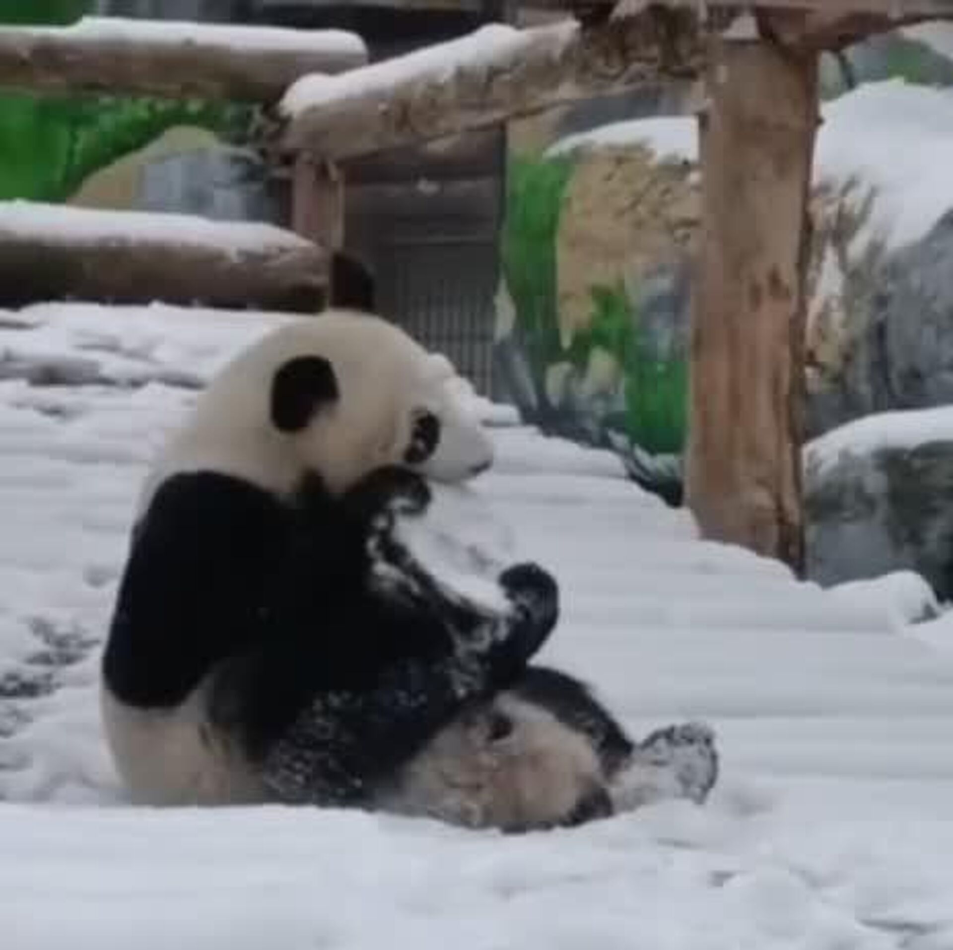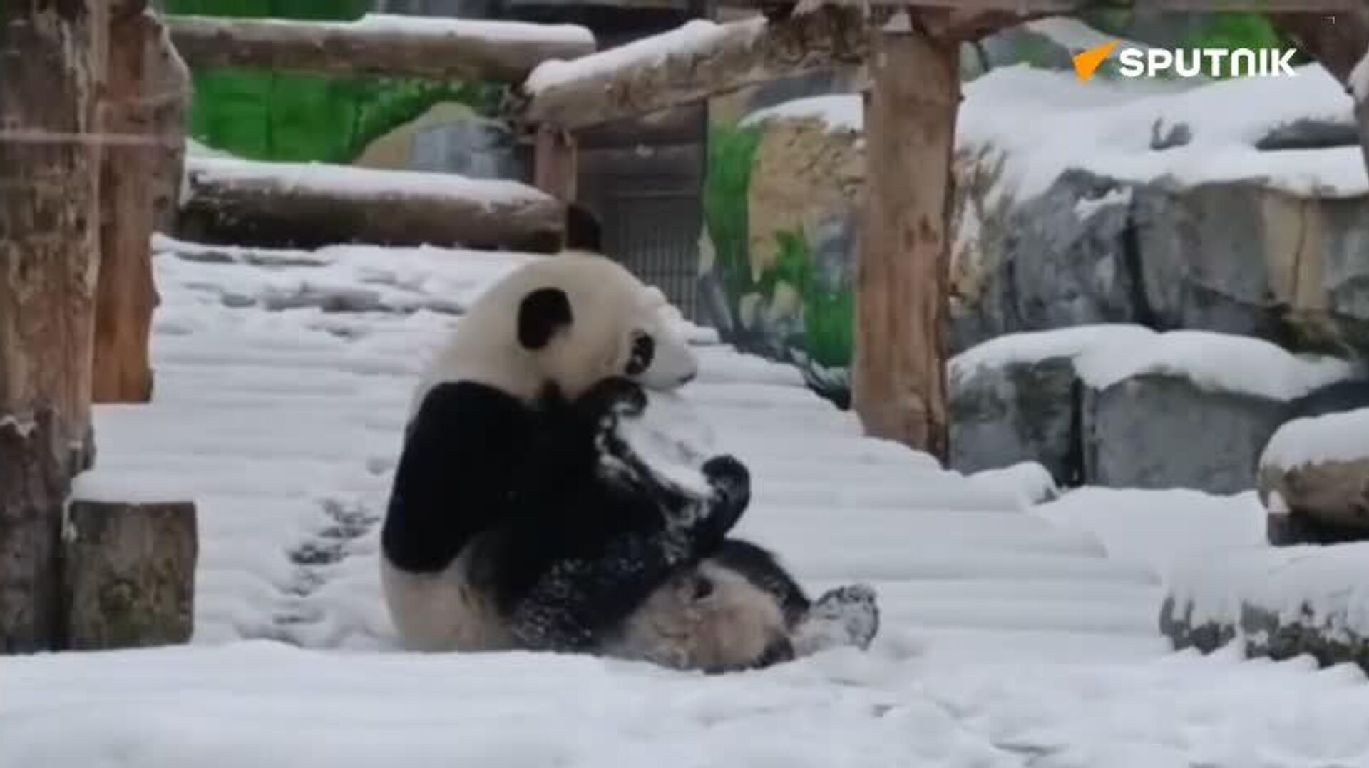 ◼ باغ وحش مسکو ویدیویی را منتشر کرد که این پاندا را در حال بازی در برفِ پوشانندهٔ محوطه باغ وحش نشان میدهد.