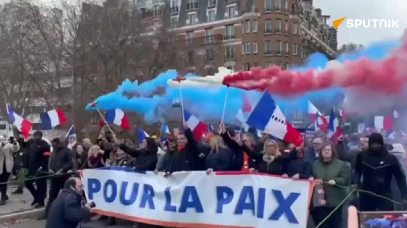 نوارهای دیداری اسپوتنیک از راهپیمایی بزرگ ضدجنگ در پاریس با شعار «ماکرون، ما برای اوکراین نمیمیریم!»