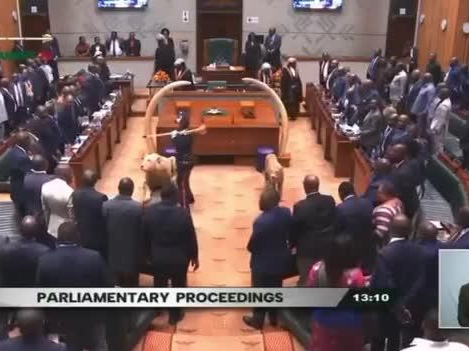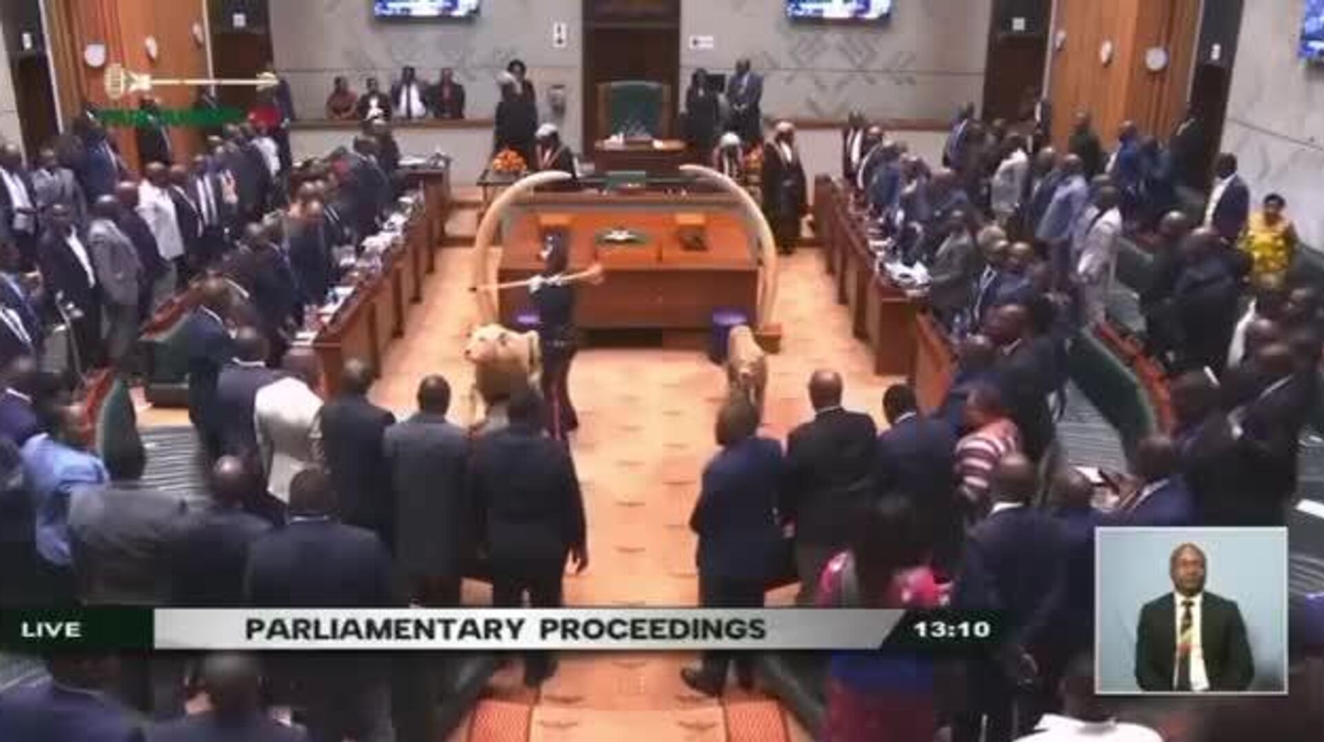 رقصیدن رئیس مجلس ملی زامبیا پس از تصویب تغییرات اساسی در قانون اساسی توسط پارلمان این کشور