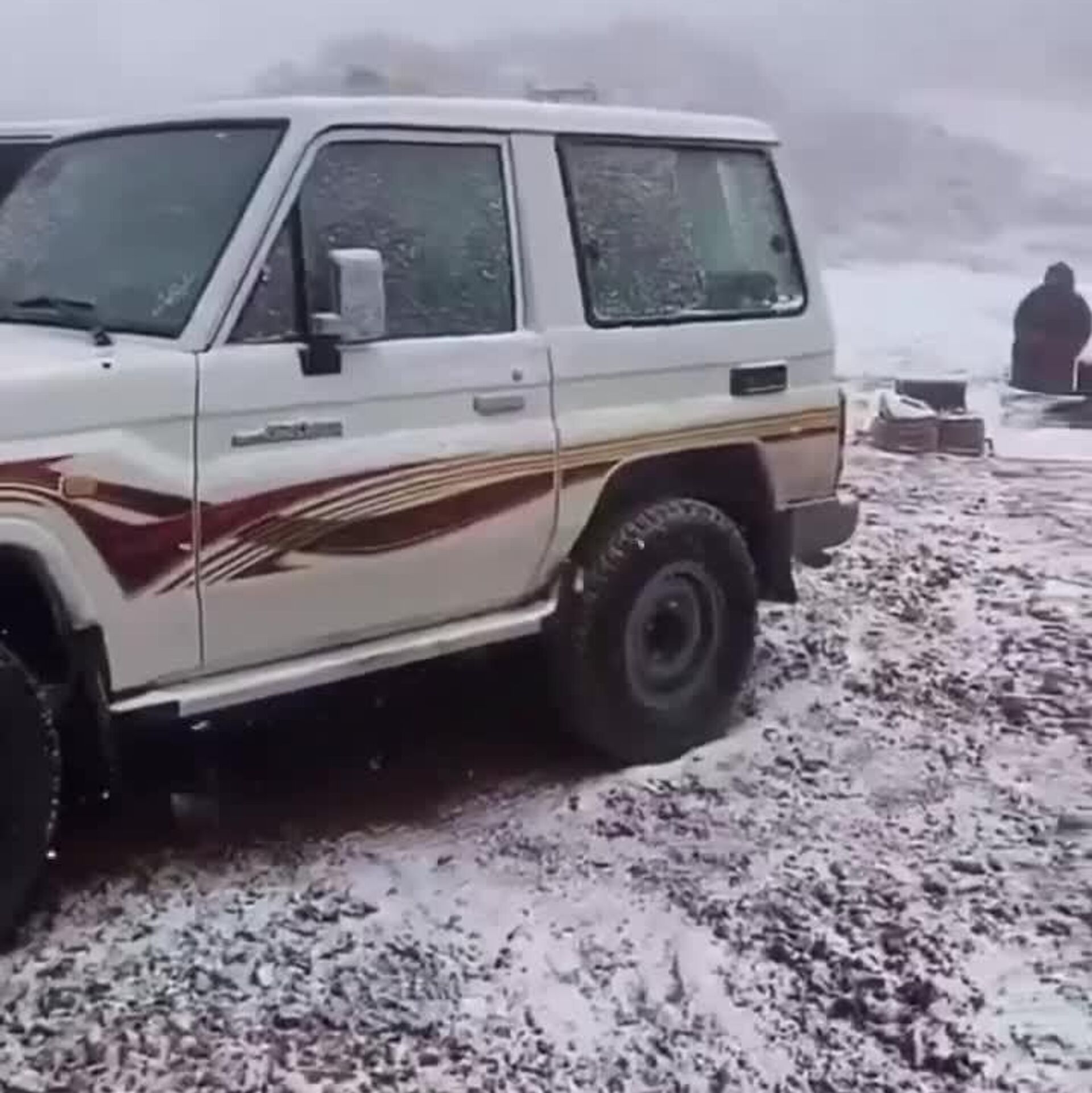 تصاویری در فضای مجازی دست به دست میشوند که بارش برف در کوه جبل اللوز در تبوک عربستان سعودی را نشان میدهند.