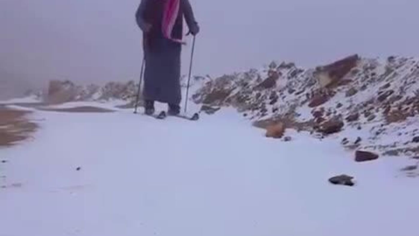 بارش برف باعث شده سعودیها در آنجا چادر بزنند و به اسکی بپردازند.
