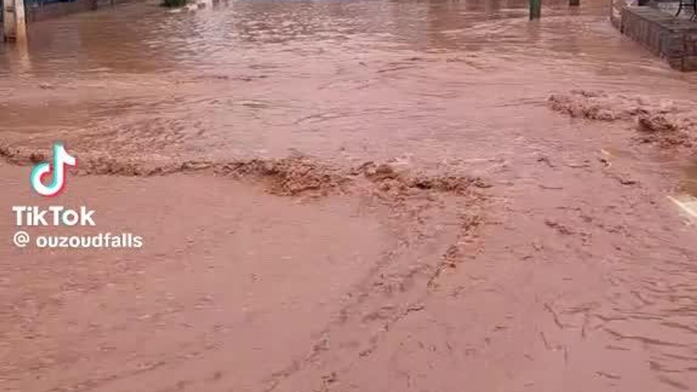 آبشارهای مراکش در اثر بارندگی های شدید به رنگ قرمز و قهوه ای تبدیل شدند