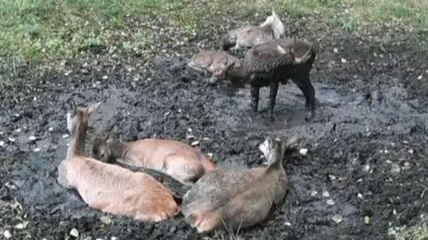 ویدیویی در شبکههای اجتماعی پولند پخش شده که گوزنهایی را نشان میدهد که در حال گرفتن حمام گل هستند.