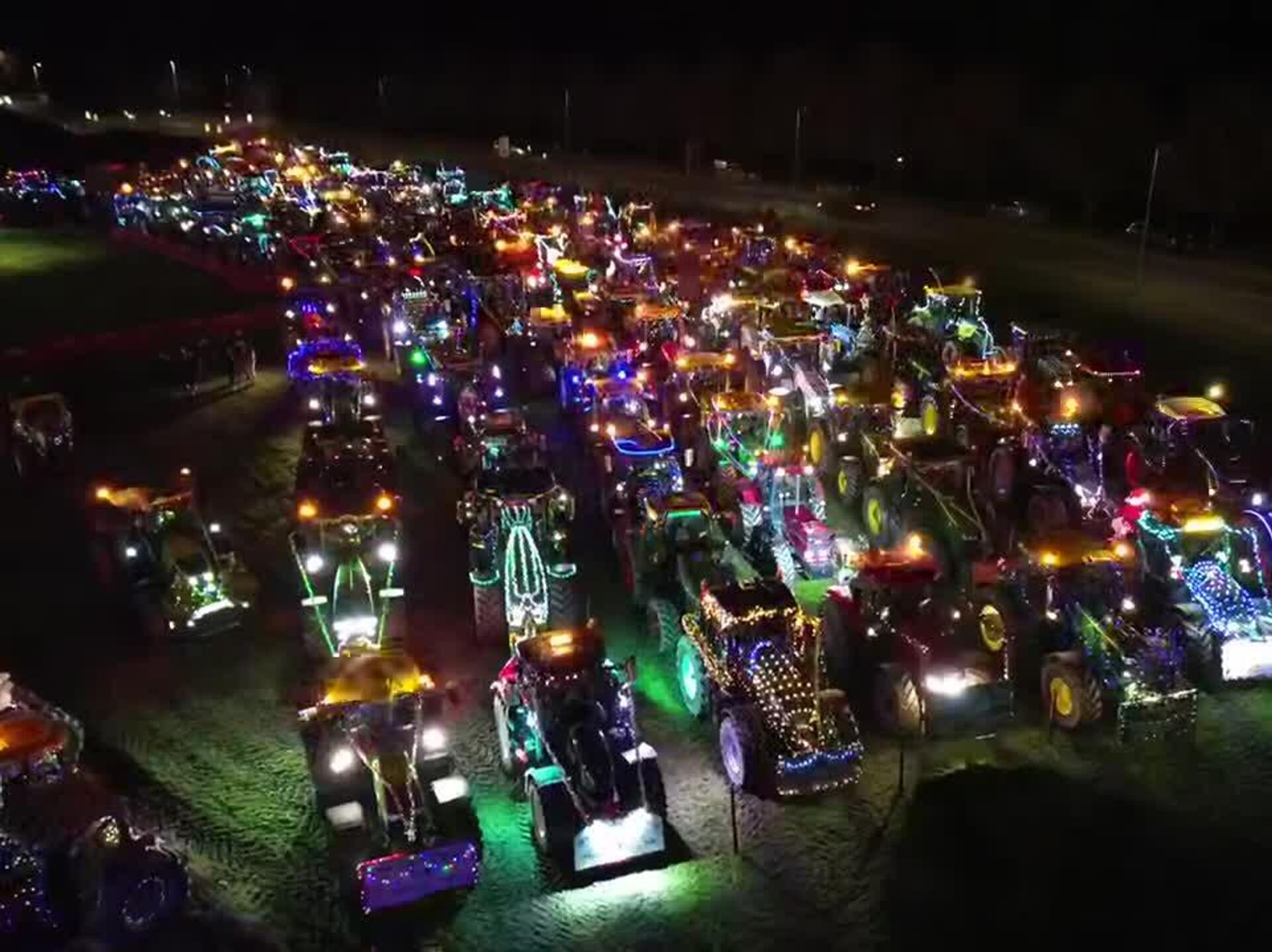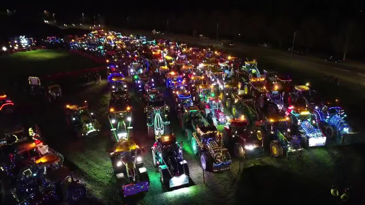 در فرانسه، کشاورزان معترض شب گذشته تراکتورهای خود را به شکل درخت کریسمس چیدهاند.