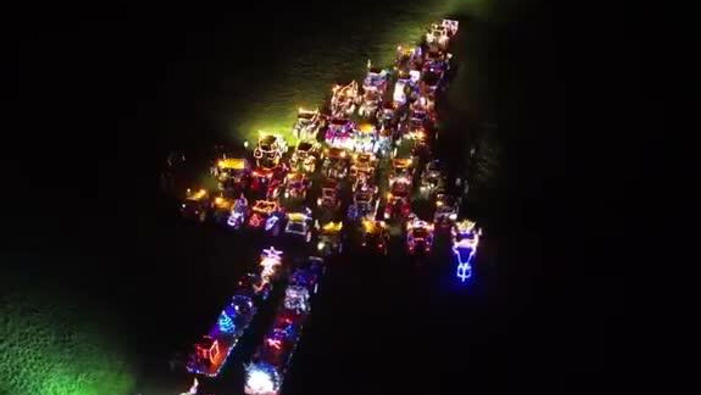 01:28 22.12.2025 (بازآوری شدن: 01:50 22.12.2025) در فرانسه، کشاورزان معترض شب گذشته تراکتورهای خود را به شکل درخت کریسمس چیدهاند.