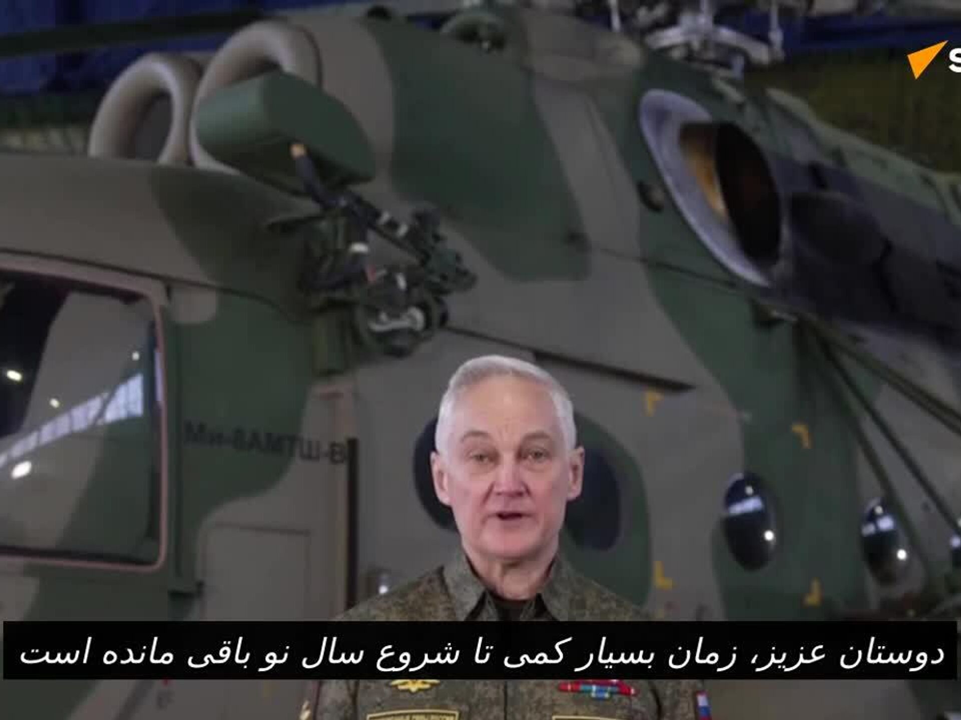 بلائوسف، وزیر دفاع روسیه در پیام تبریک پیش از سال نو از تیمها شرکتها، داوطلبان، سازمانهای عمومی و همه افراد ذینفع تشکر کرد.