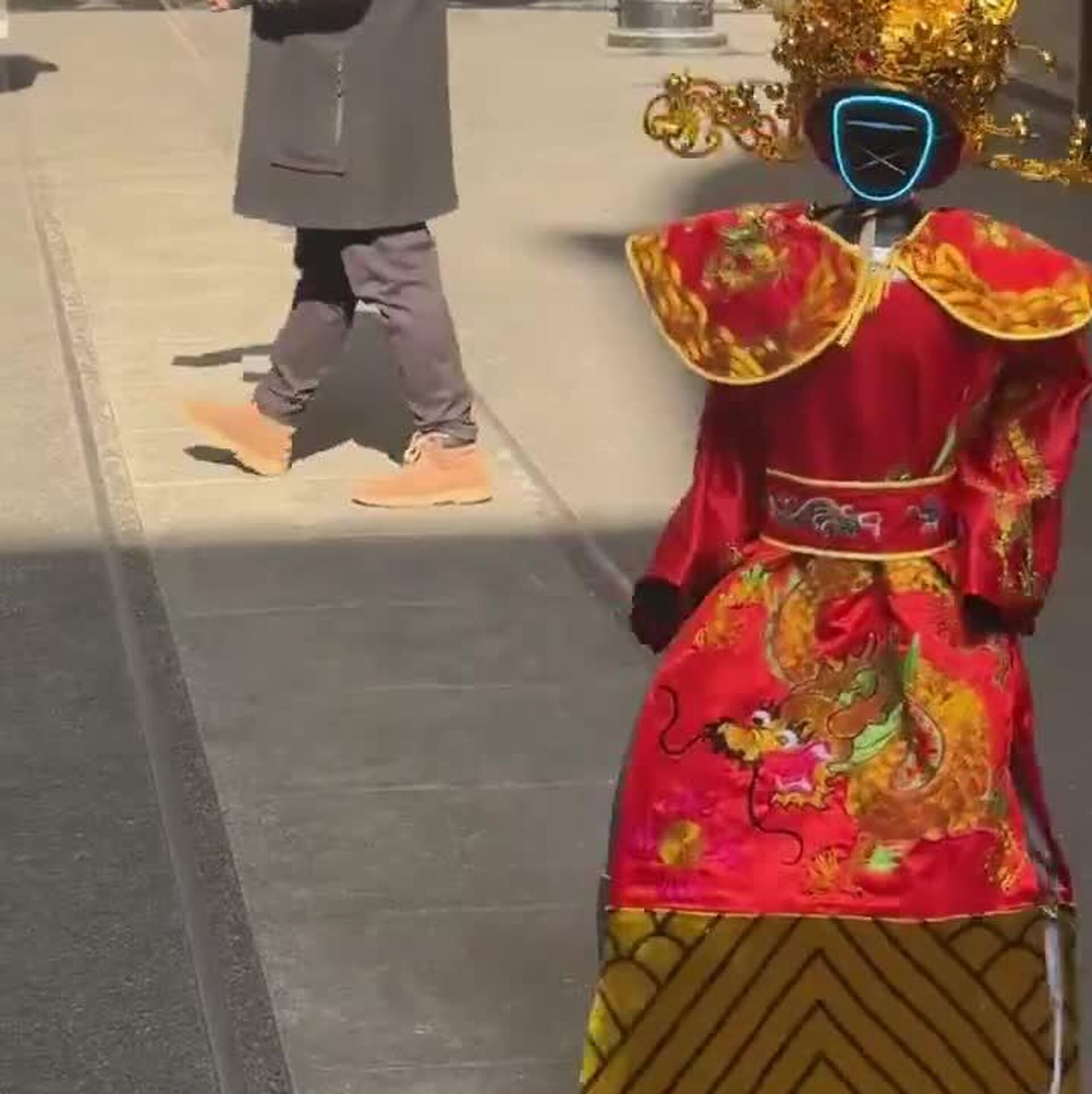 روباتی که به شکل خدای ثروت چینی لباس پوشیده شده در شانگهای دیده شده است