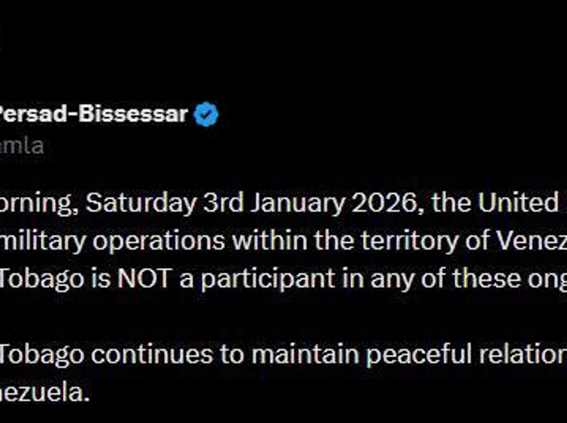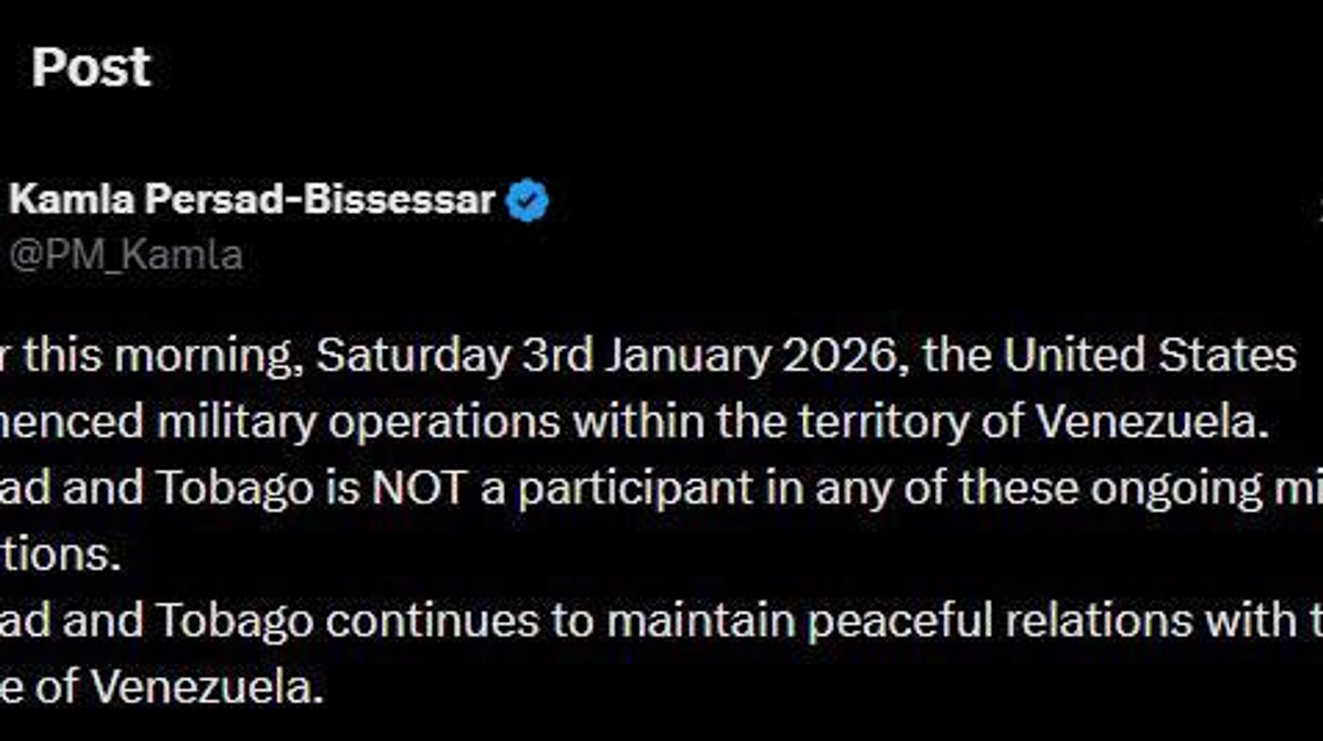 ⭕نخستوزیر ترینیداد و توباگو دست داشتن در حملات امروز در کاراکاس را رد کرد