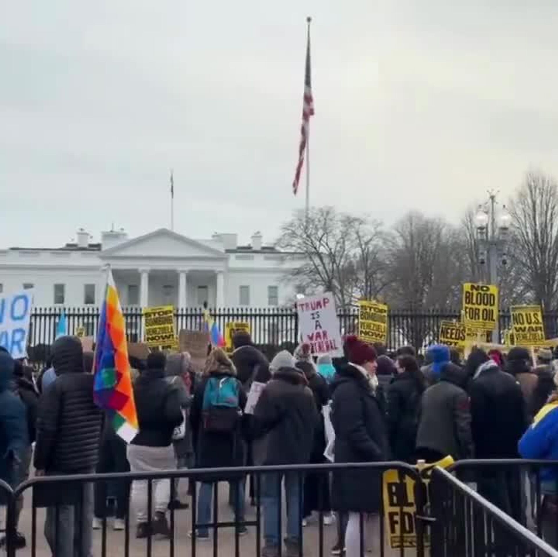 معترضان در برابر عملیات نظامی امریکا در ونزوئلا، در پیرامون کاخ سفید گرد هم آمدهاند.