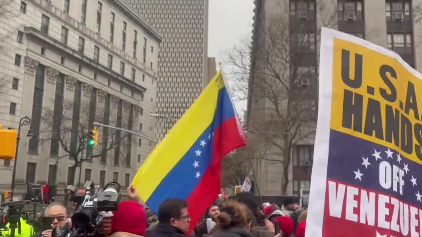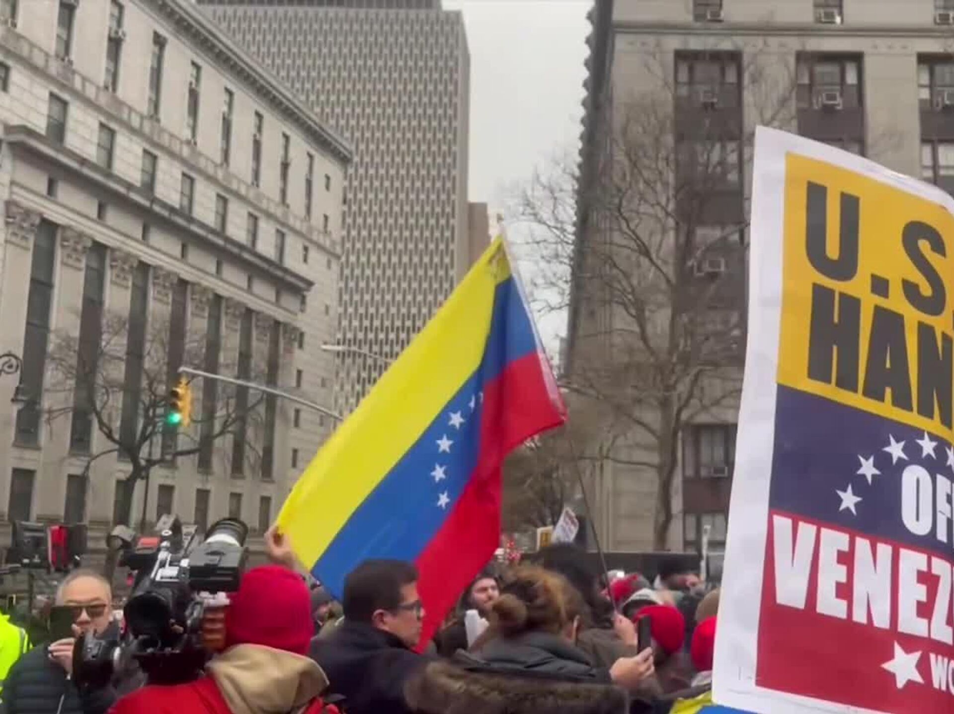 معترضان همچنان در مقابل دادگاه منهتن، جایی که مادورو قبلاً به آنجا برده شده بود، اعتراض دارند.
