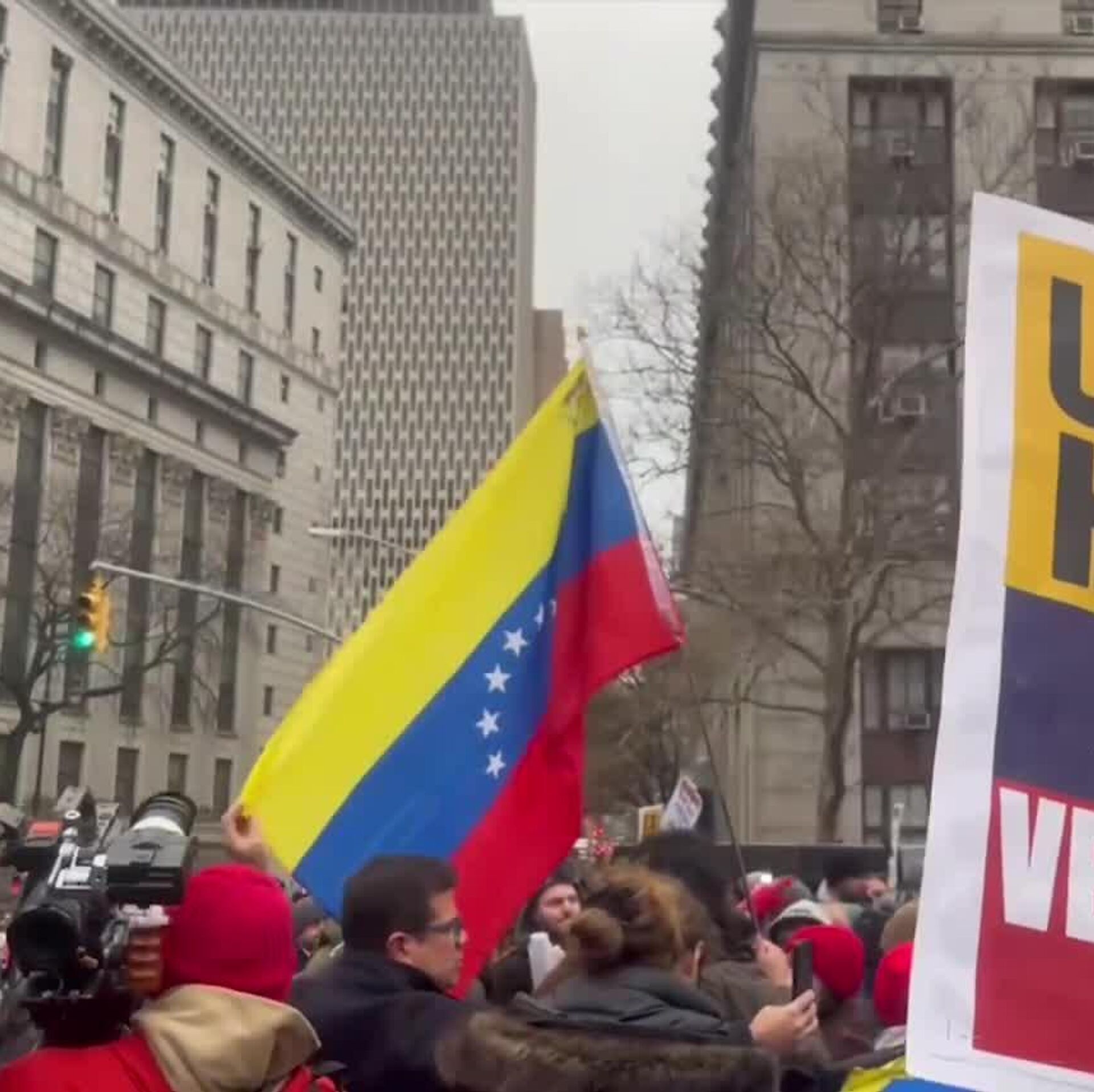 تظاهرکنندگان در مقابل دادگاه منهتن، جایی که مادورو به آنجا منتقل شده