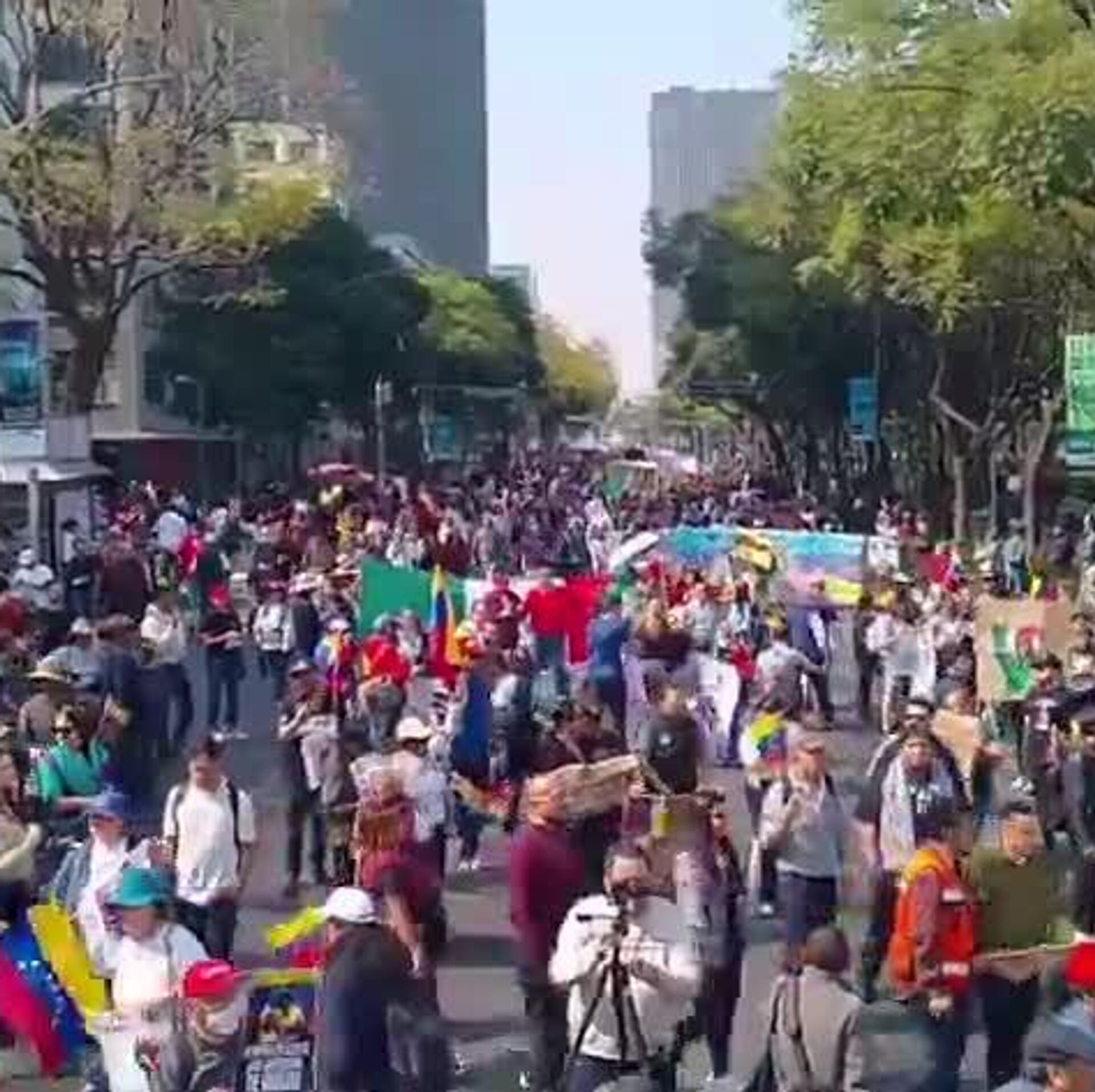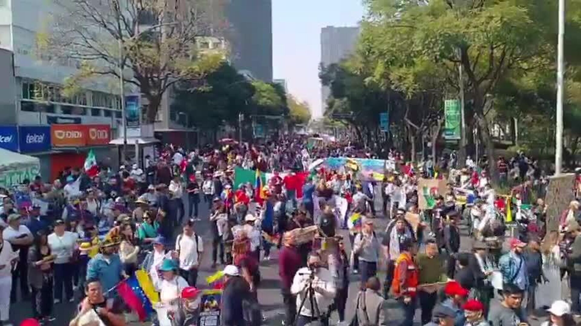 تظاهرات در شهر مکسیکو علیه مداخله آمریکا در ونزوئلا