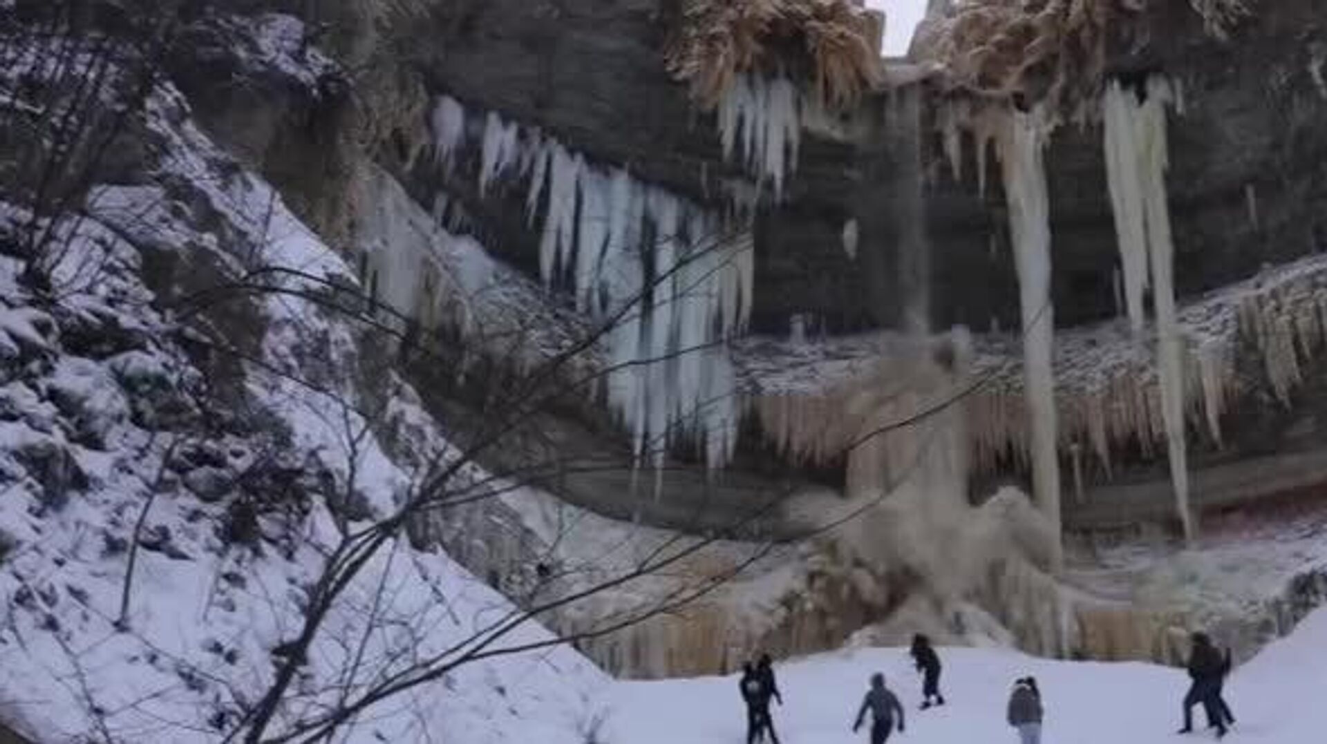 در استونیه، آبشار یخ زده به روی گردشگران فرو ریخت