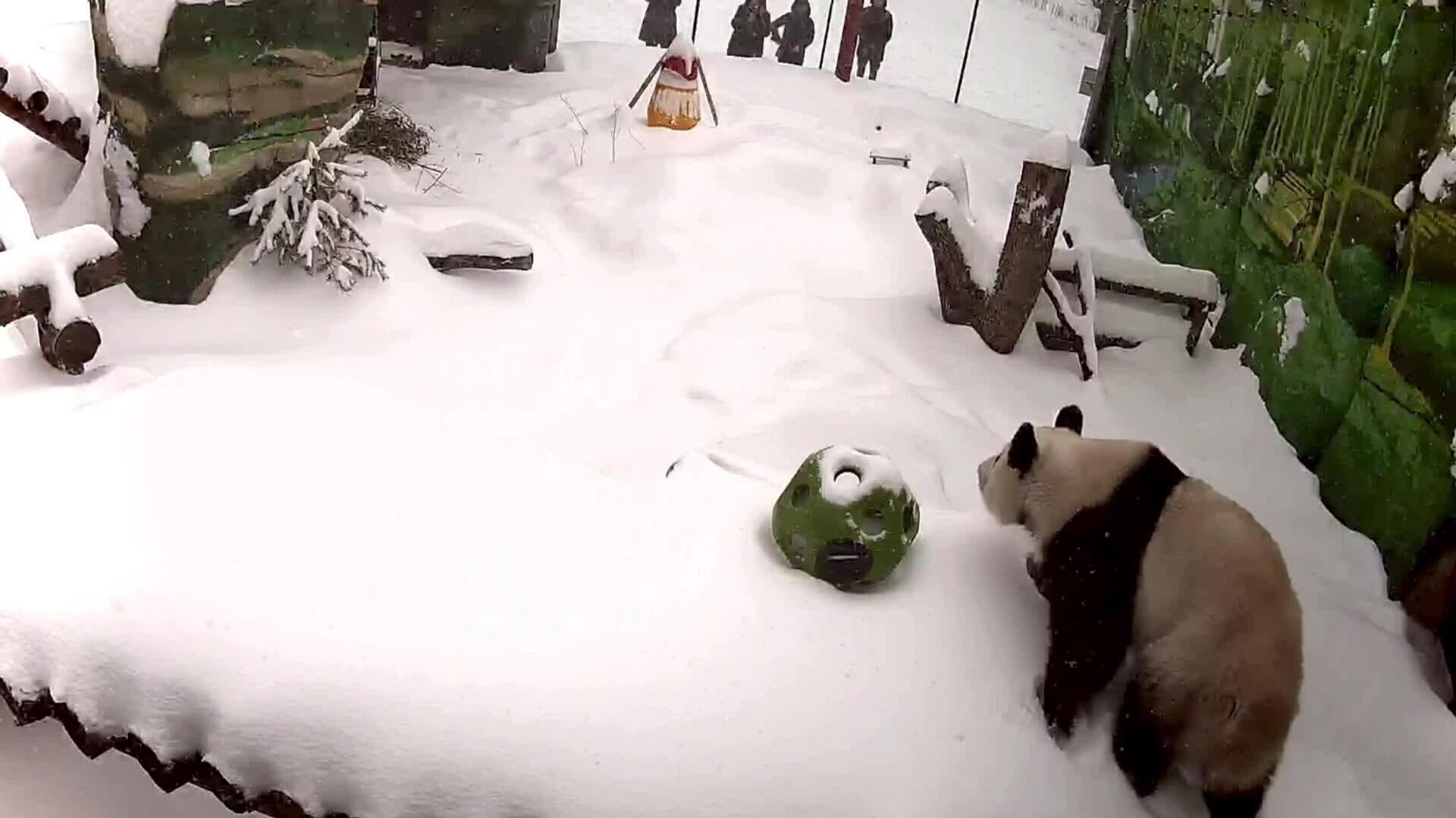 کاتیوشای شیطان "پاندای باغ وحش مسکو" به همه نشان داد که ورود به محوطه بعد از بارش برف چقدر لذتبخش است.