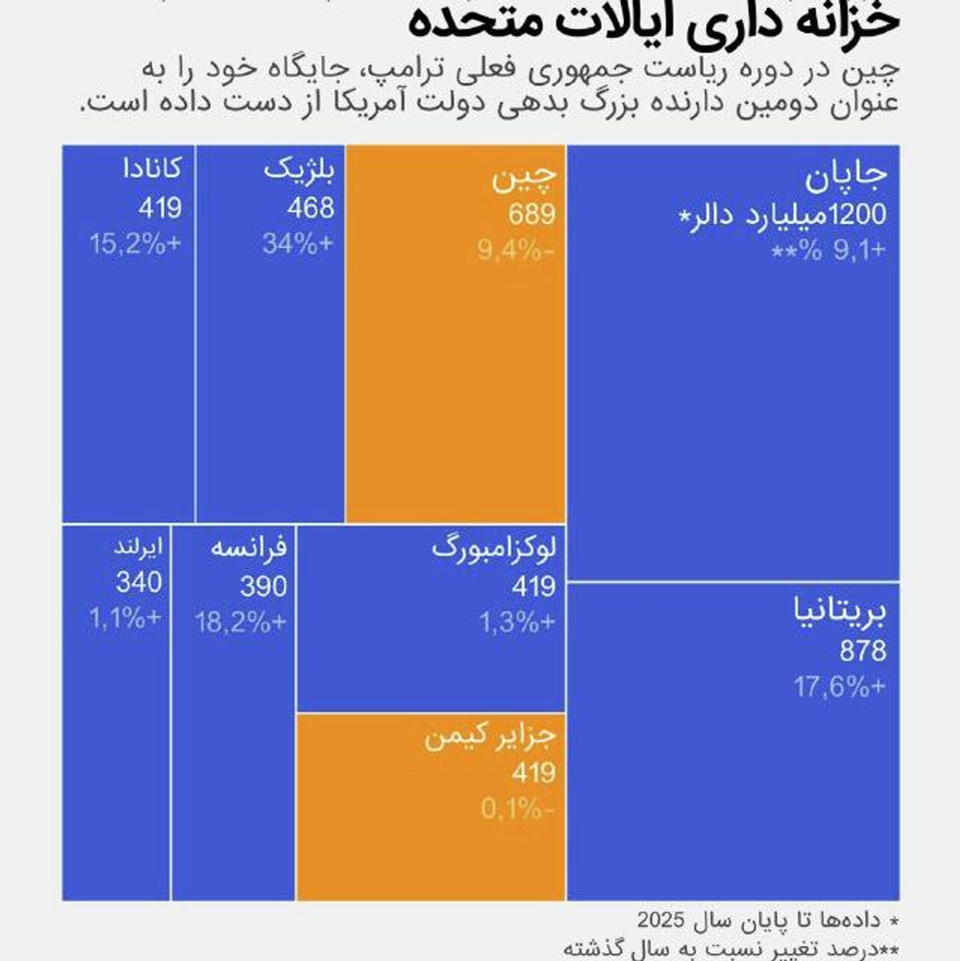 ◆ دادههای جدید وزارت خزانهداری امریکا، باز توزیع داراییها در میان دارندگان خارجی بدهی دولتی این کشور را در بافت تشدید تنشهای بازرگانی نشان میدهد. جاپان همچنان بزرگترین دارنده باقی مانده است، در حالی که چین راهبردی ذخیرهای خود را تعدیل کرده و دیگر دومین دارنده از نظر حجم نیست.
