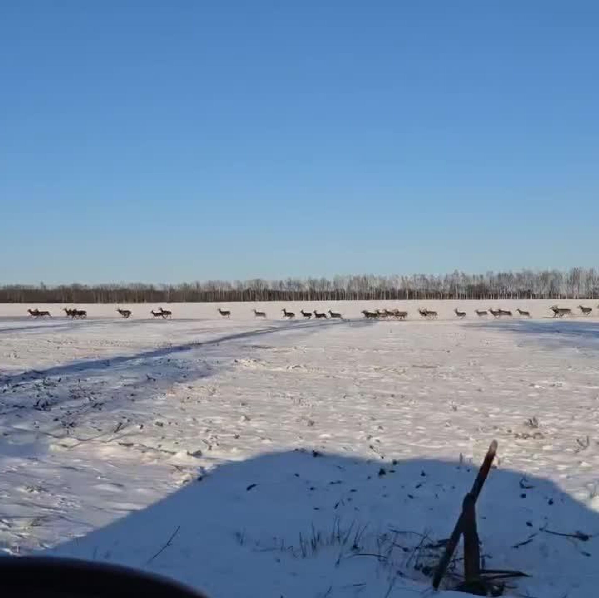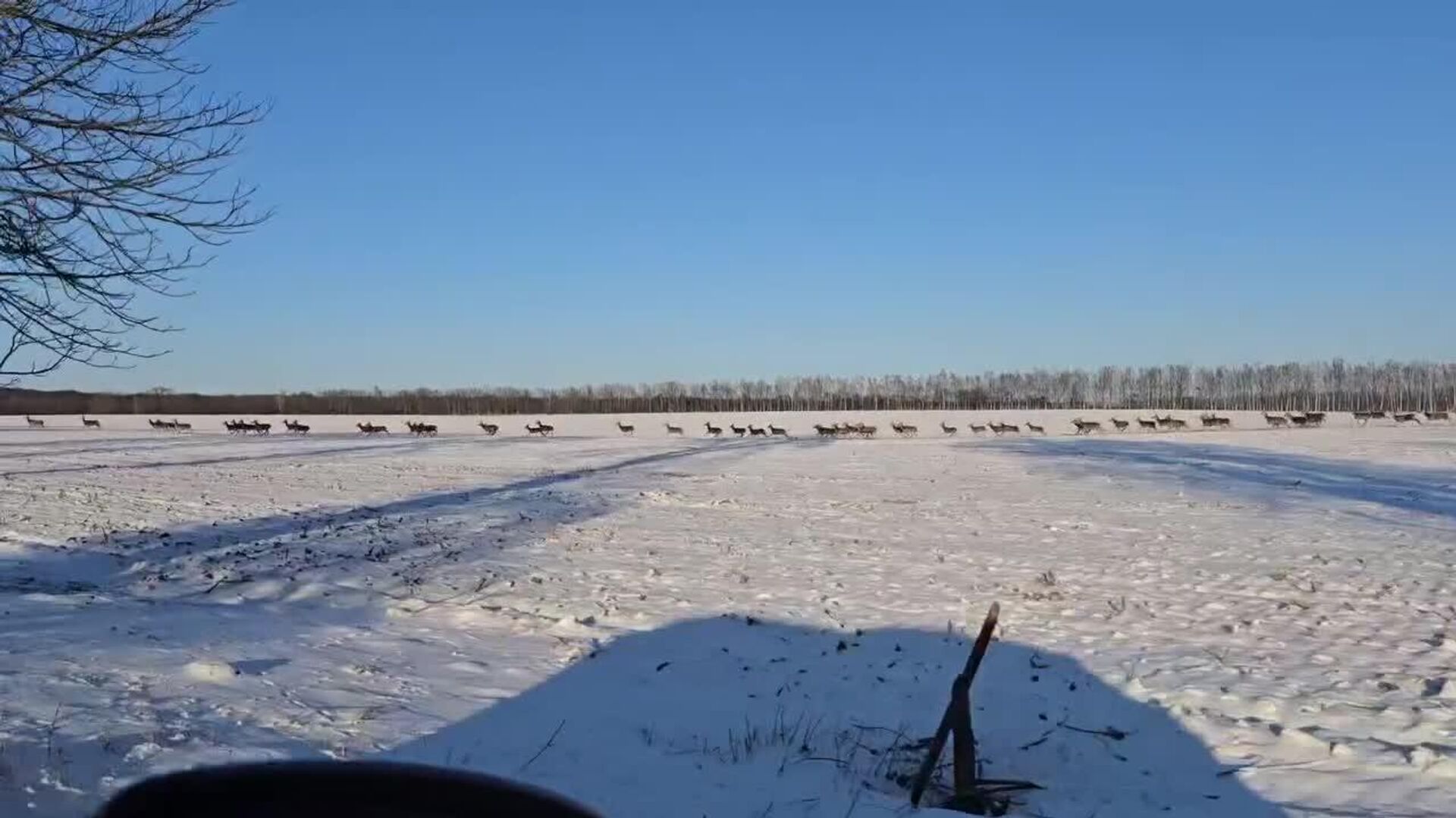 زیبایی طبیعت؛ گلهای از گوزنها در پارک ملی بزرگ پولند در شهر پازنان از سرک عبور میکنند