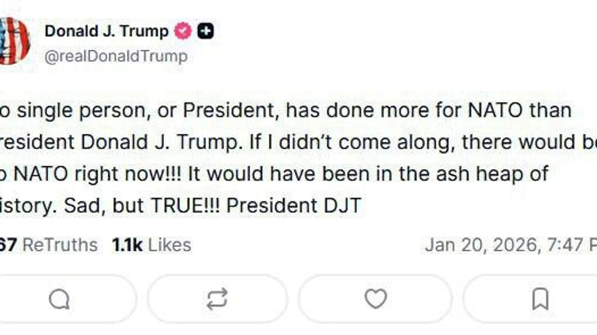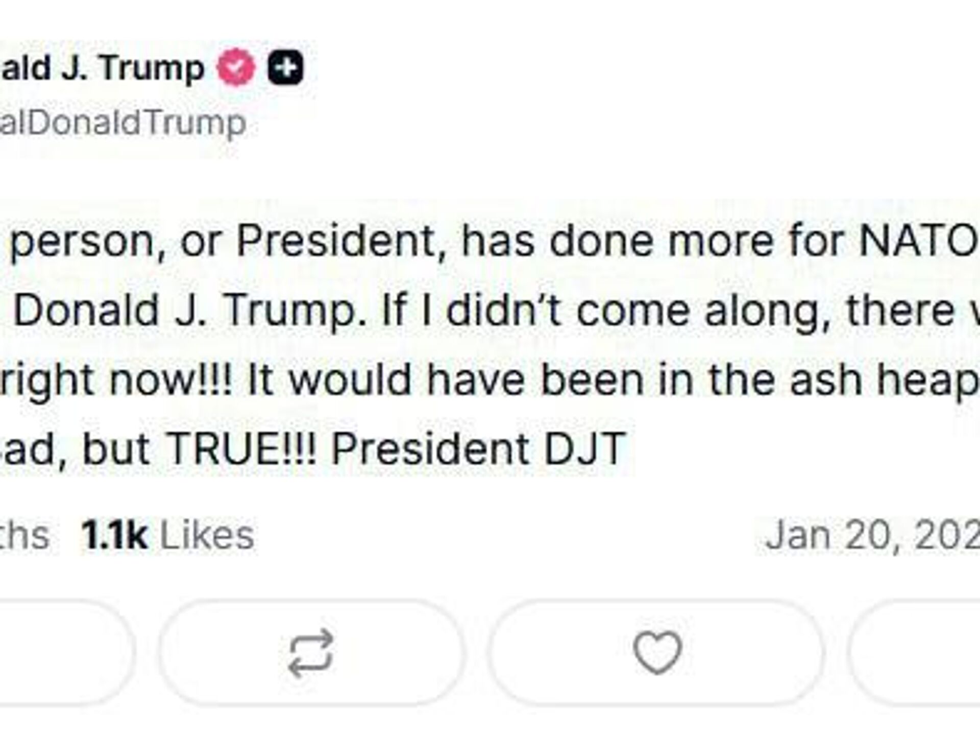 21:29 20.01.2026 (بازآوری شدن: 21:30 20.01.2026) ترامپ اعلام کرد که بدون او، ناتو در حال حاضر "در زباله های تاریخ" قرار می گرفت