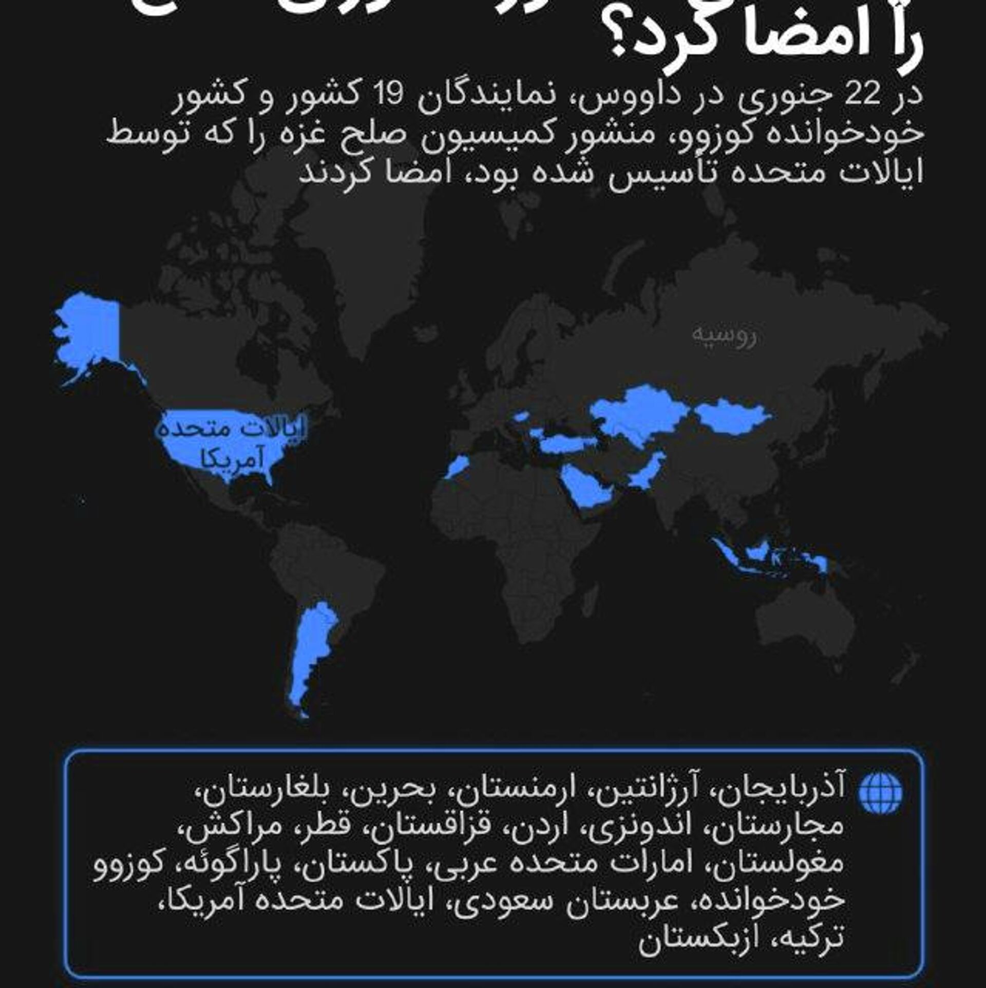 کدام کشورها منشور شورای صلح غزه به رهبری ایالات متحده را امضا کردند؟