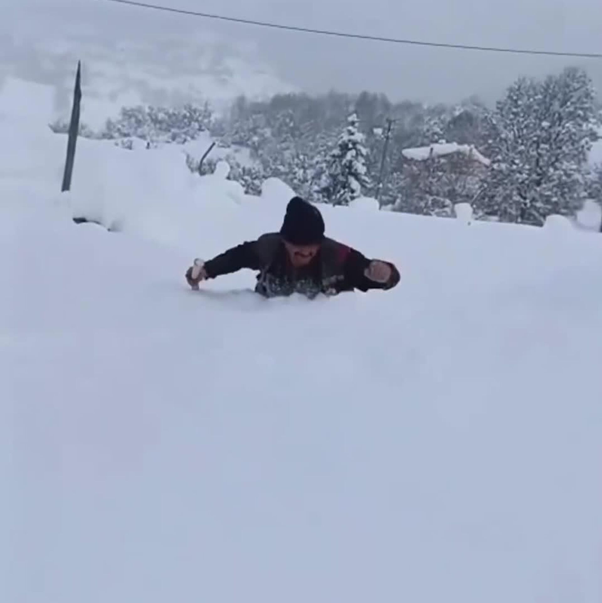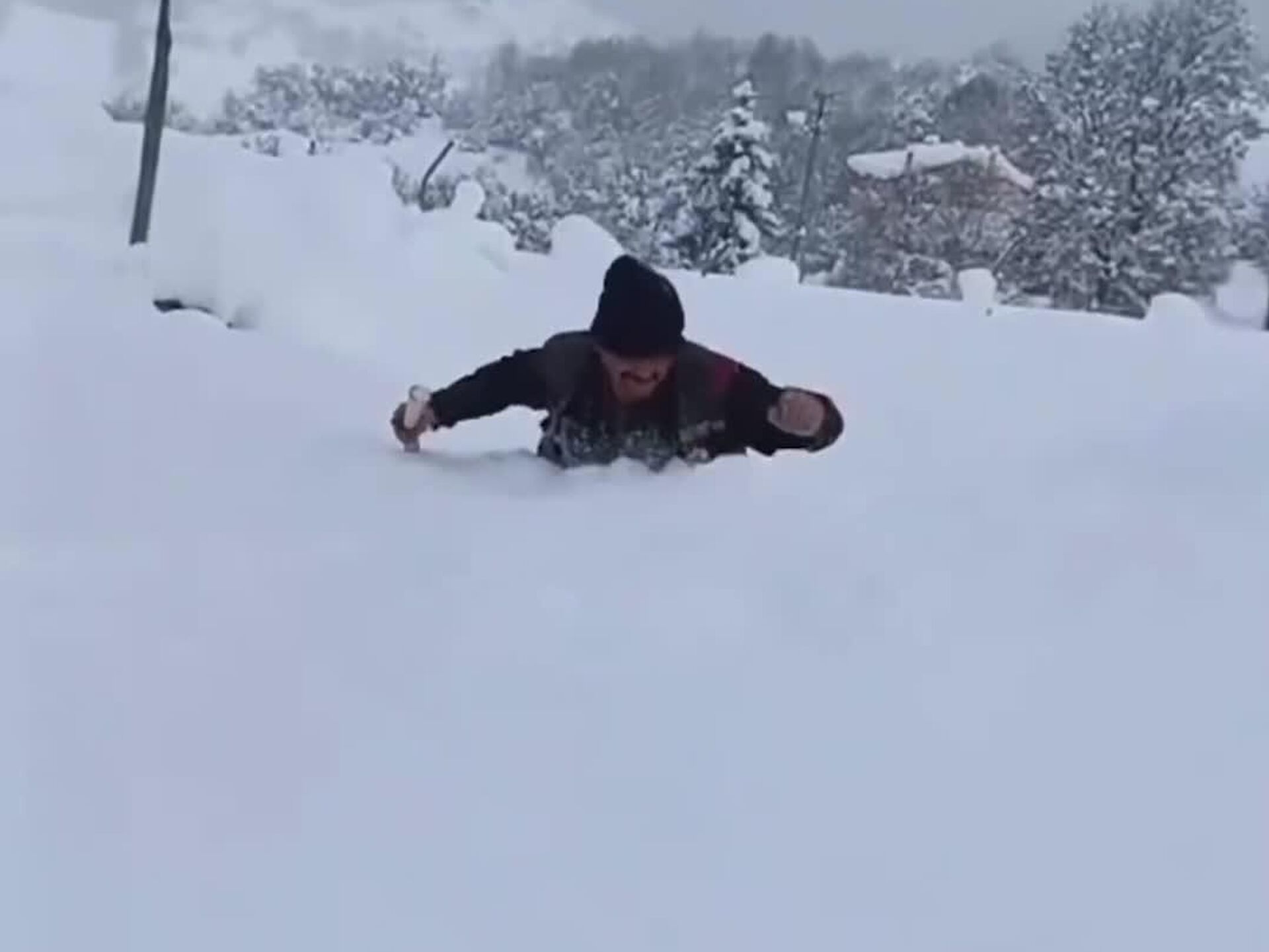 یک شهروند ترکیه مجبور شد از میان برفهای جمعشده تا ارتفاع سینه عبور کند. بیش از یک ماه است که کشور زیر بارشهای شدید برف قرار دارد.