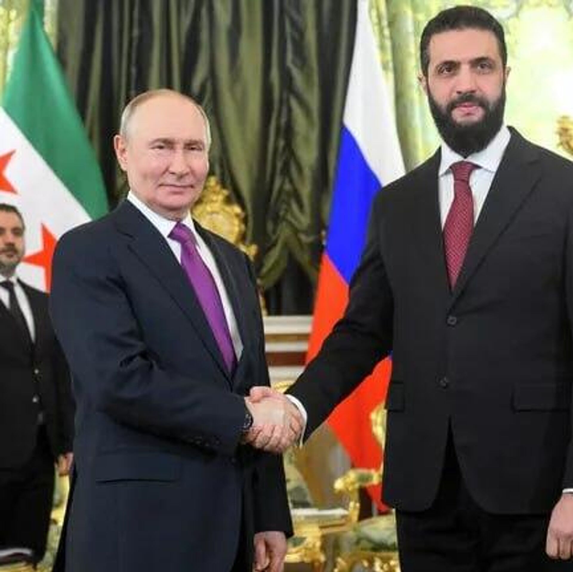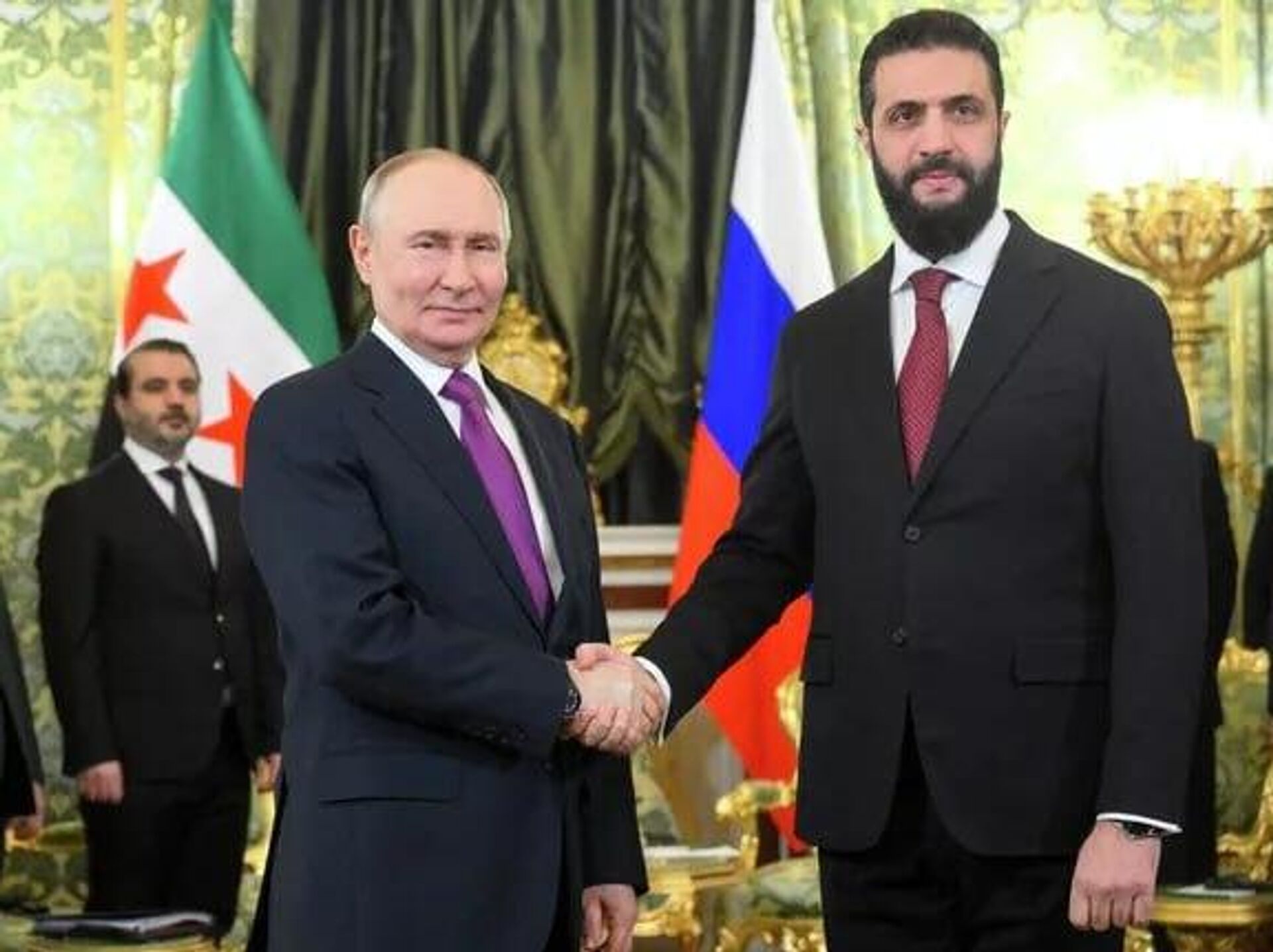◻ولادیمیر پوتین، رئیس جمهور روسیه، در دیدار با احمد الشرع، رئیس جمهور سوریه گفت: " اکنون در شرایط جدید، در درجه اول به لطف تلاشهای شما، روابط بین سوریه و روسیه در حال گسترش است."