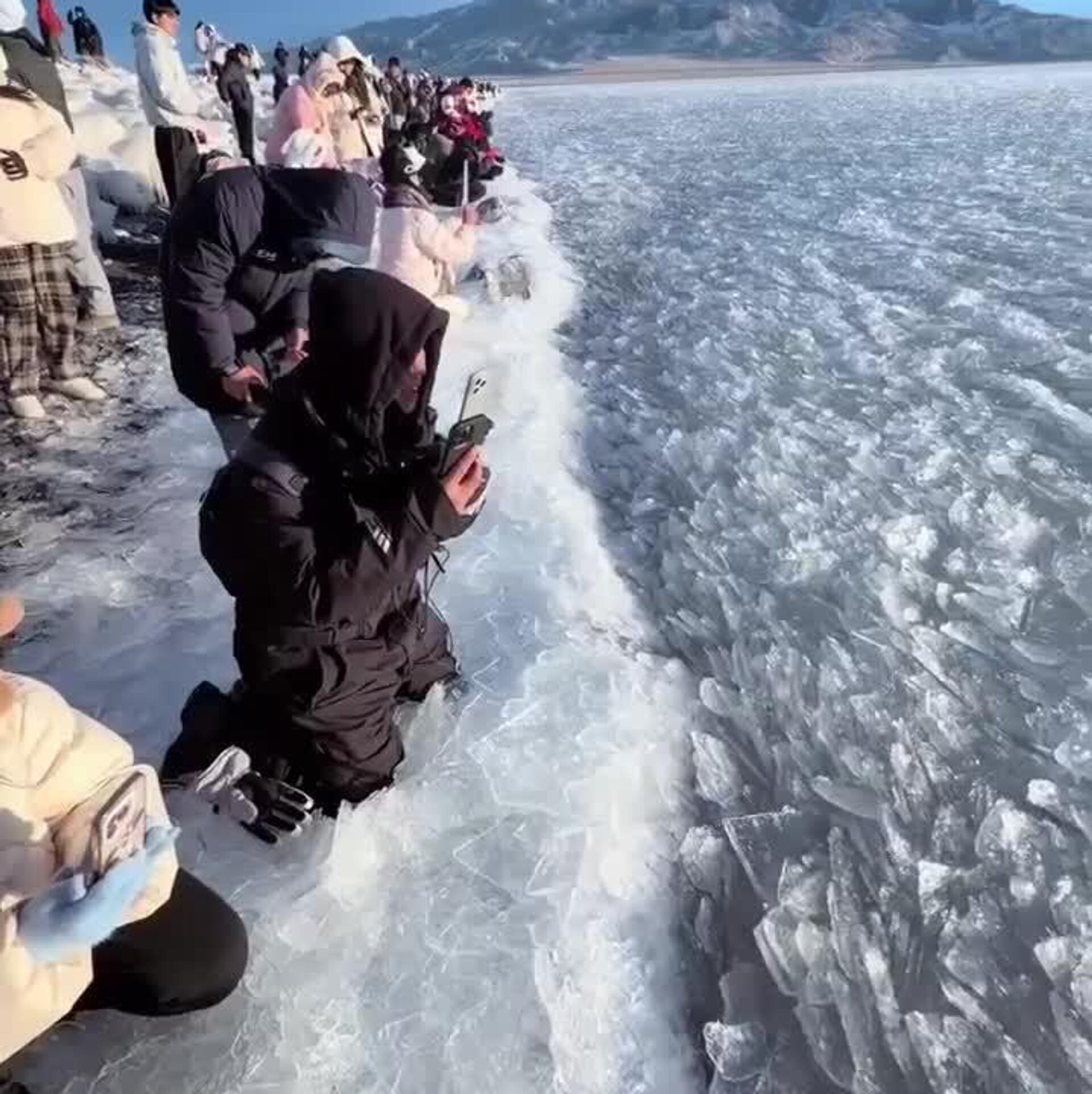 بر سطح دریاچه، صفحههای نازک یخ شکل میگیرد که تحت تأثیر باد یا جریان آب در یک جهت حرکت میکنند. این صفحهها روی هم میلغزند، میشکنند و تودهای شناور و متحرک از یخها را پدید میآورند.