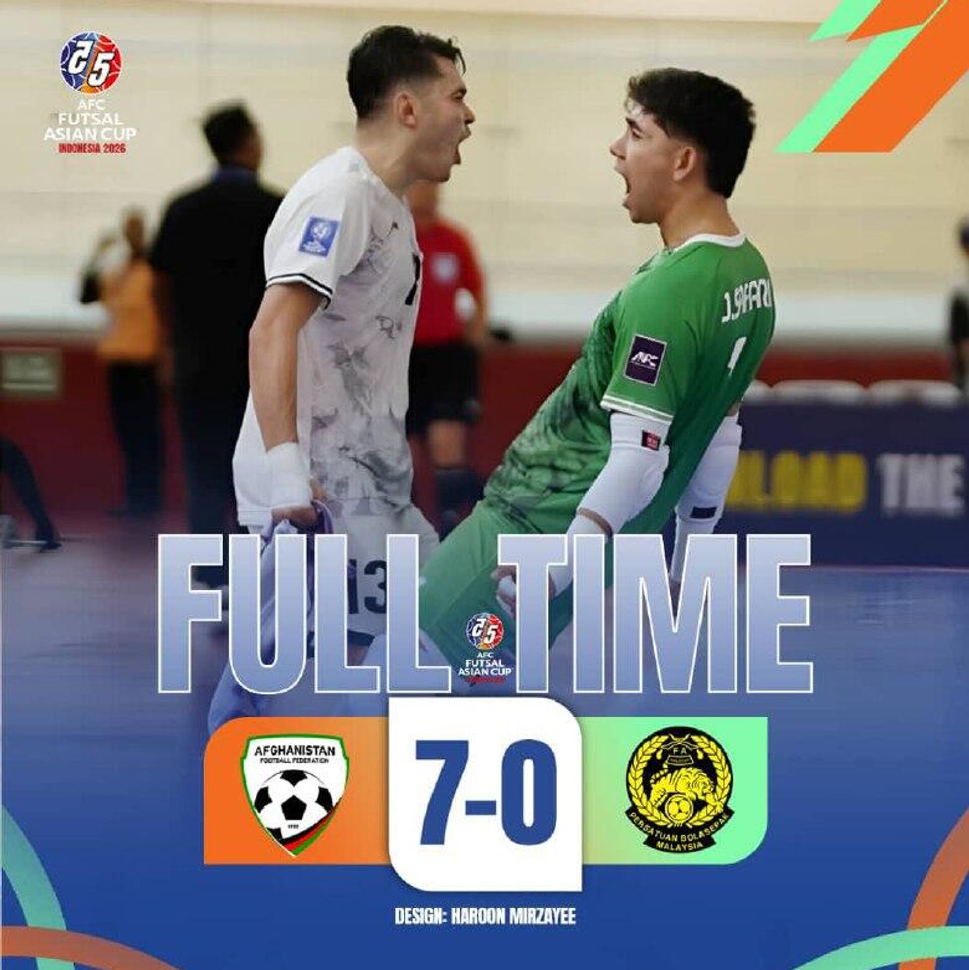 تیم ملی فوتسال افغانستان با یک نمایش قدرتمند و پیروزی پرگل 7 بر صفر برابر مالزیا، صعود خود را به مرحله یکچهارم نهایی جام ملتهای آسیا قطعی کرد.