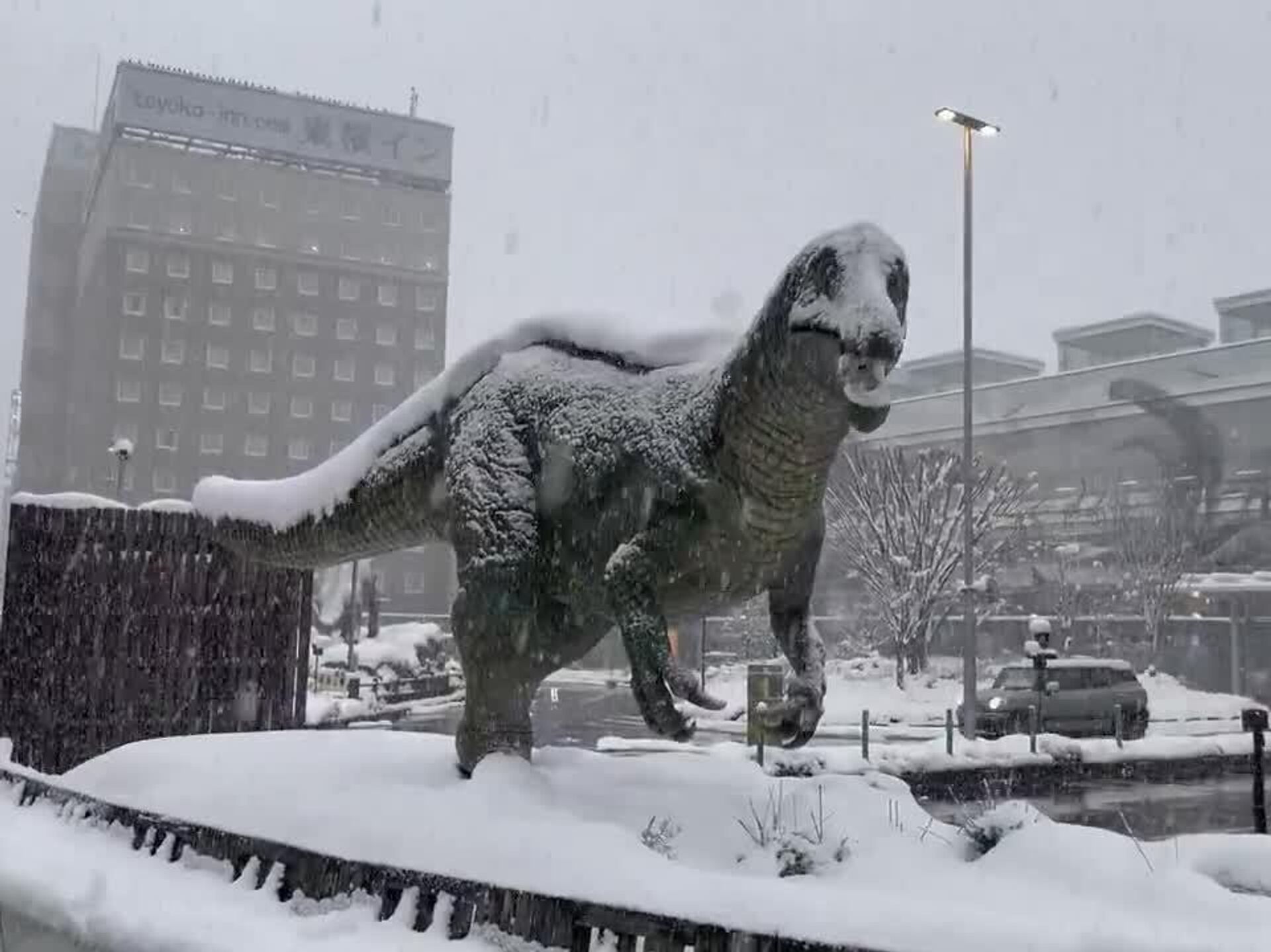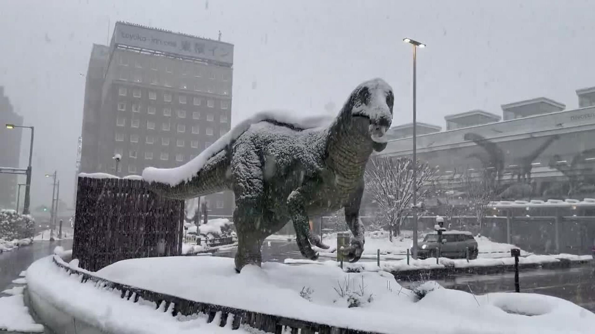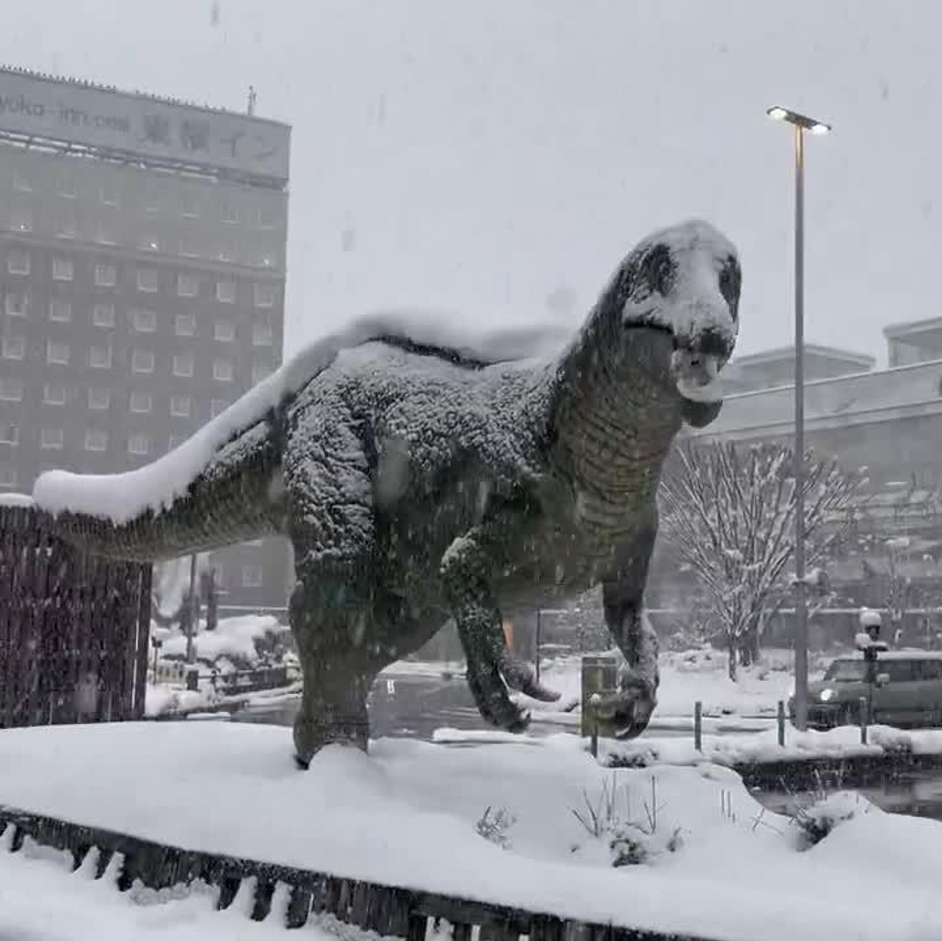 در شهر فوکویی جاپان که این روزها تحت تأثیر بارشهای سنگین برف قرار گرفته، میتوان دایناسورها را دید، گویی از دوران عصر یخبندان «زنده شدهاند»
