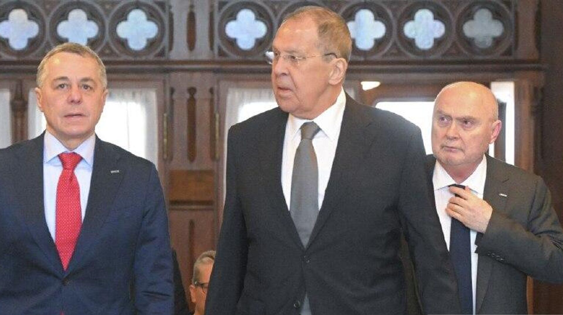 سرگئی لاوروف، وزیر امور خارجه روسیه، پس از گفت و گو با وزیر امور خارجه سوئیس و دبیرکل سازمان امنیت و همکاری اروپا: