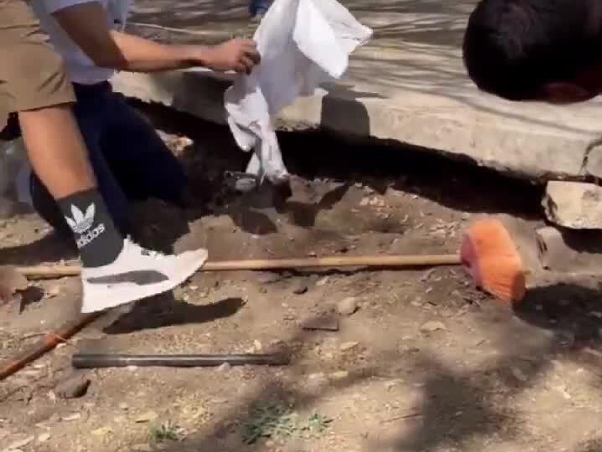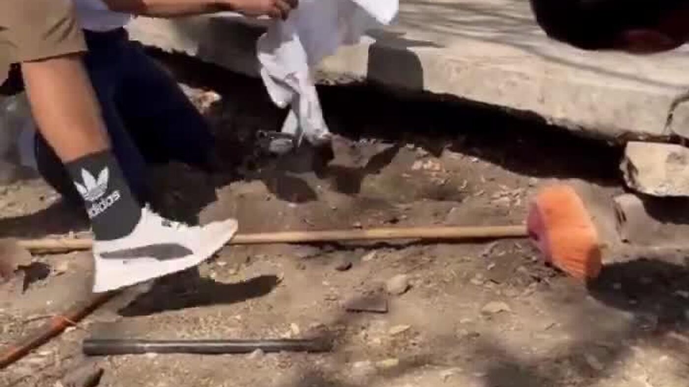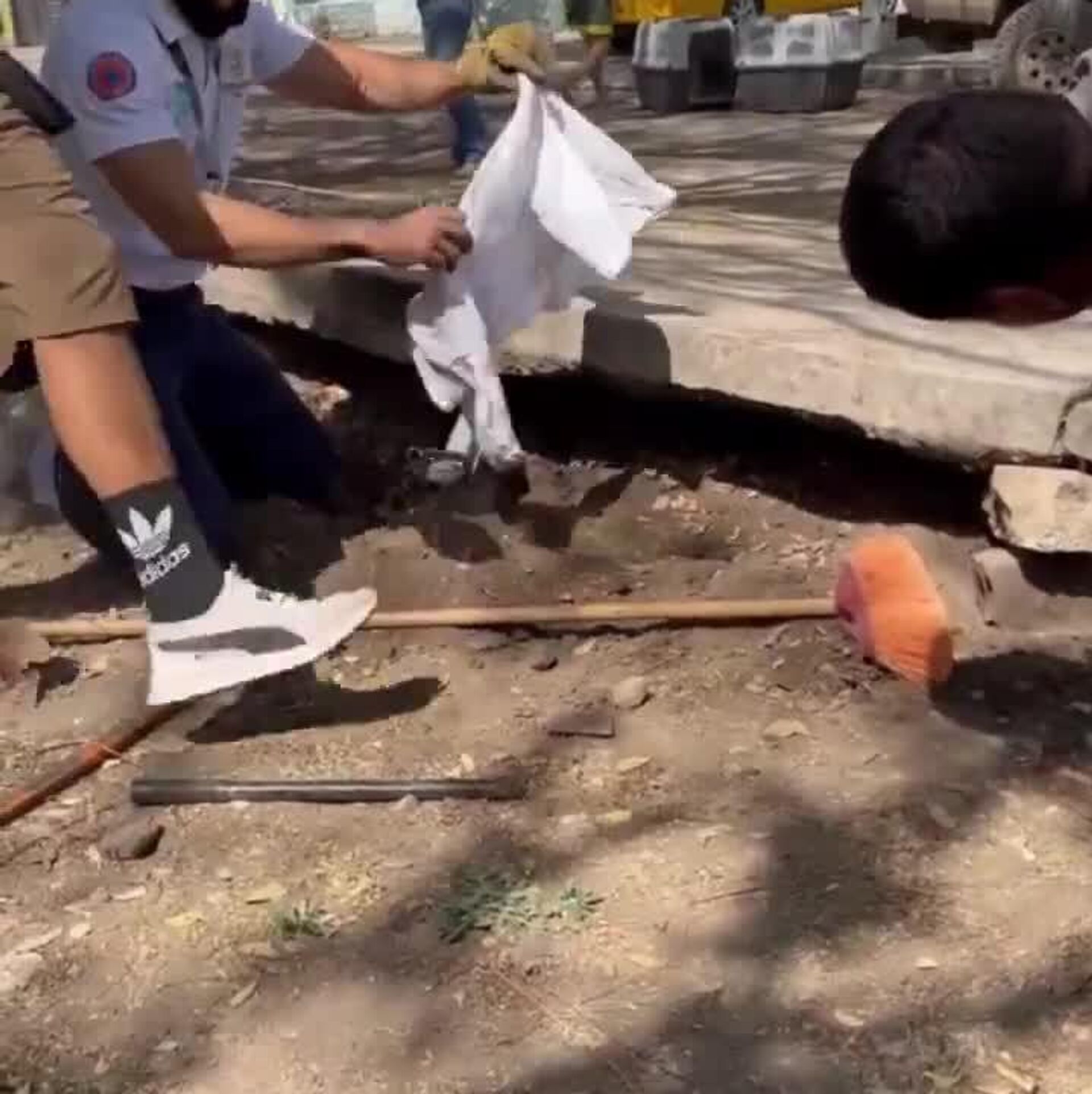نجات سگ از زیر تخته کانکریتی در مکزیک